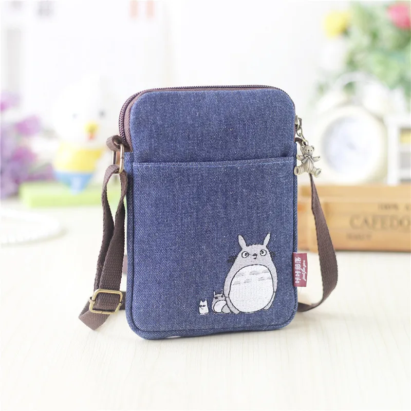 Джинсовая сумка на плечо с вышитым мультяшным Тоторо, свежая малень...