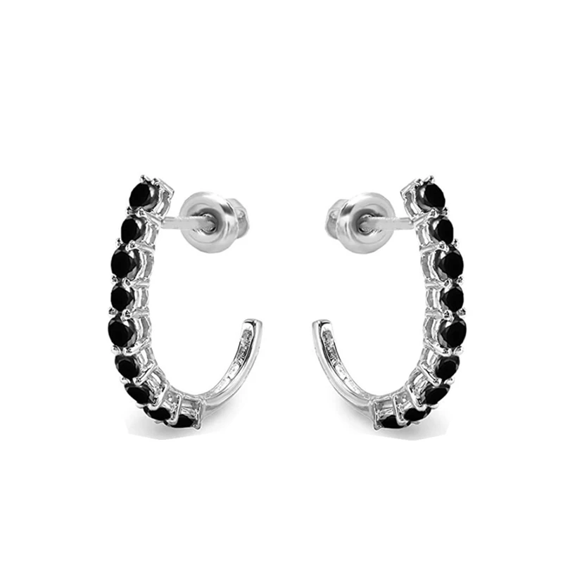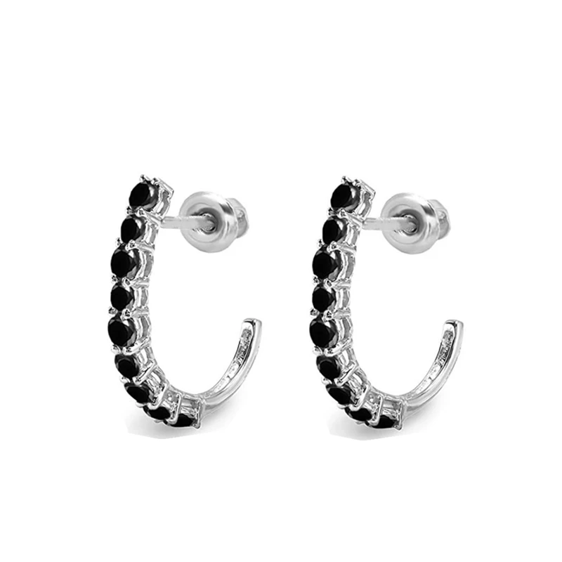 Серьги-кольца женские из серебра 5,3 пробы с черной шпинелью, 925 г