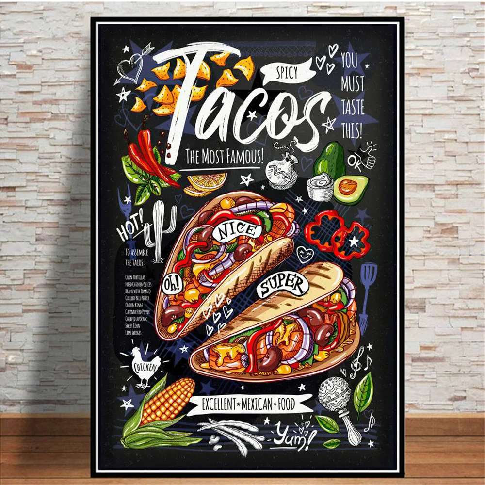 Пицца, гамбургеры, тако, закуски, постеры и принты еды, ресторан, настенный кухонный арт, Декор, холст, картина для бара, столовой, Куадрос