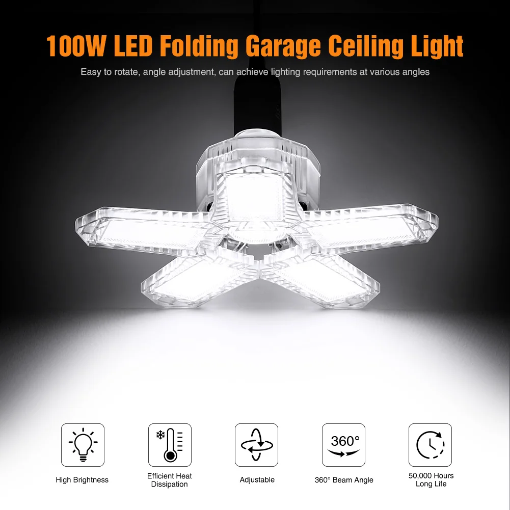 Светодиодный потолочный светильник для гаража с пятью листьями e27, мощный светильник для гаража, складной деформационный светильник домашняя мастерская, промышленный светильник