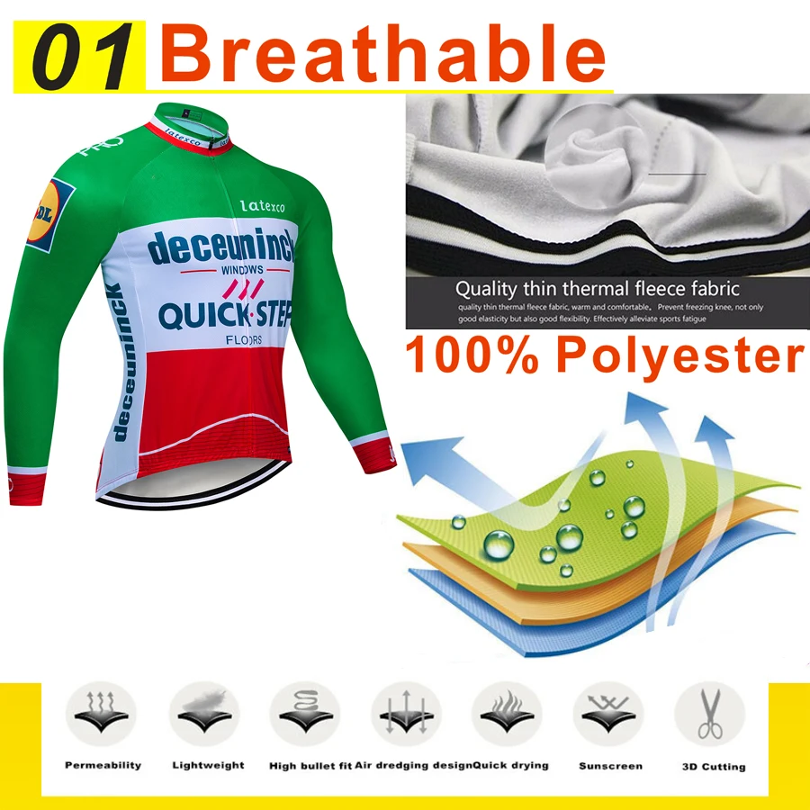 Зимний велосипедный комплект Quick Step, велосипедная команда, термальная флисовая спортивная одежда с длинным рукавом, гоночный Трикотажный костюм, Мужская велосипедная одежда