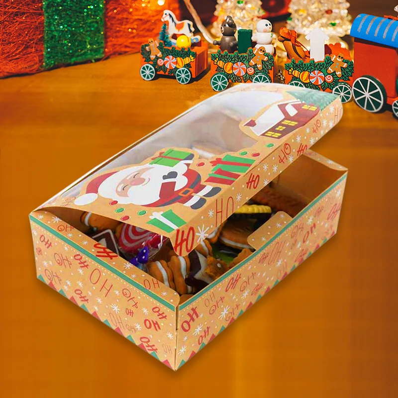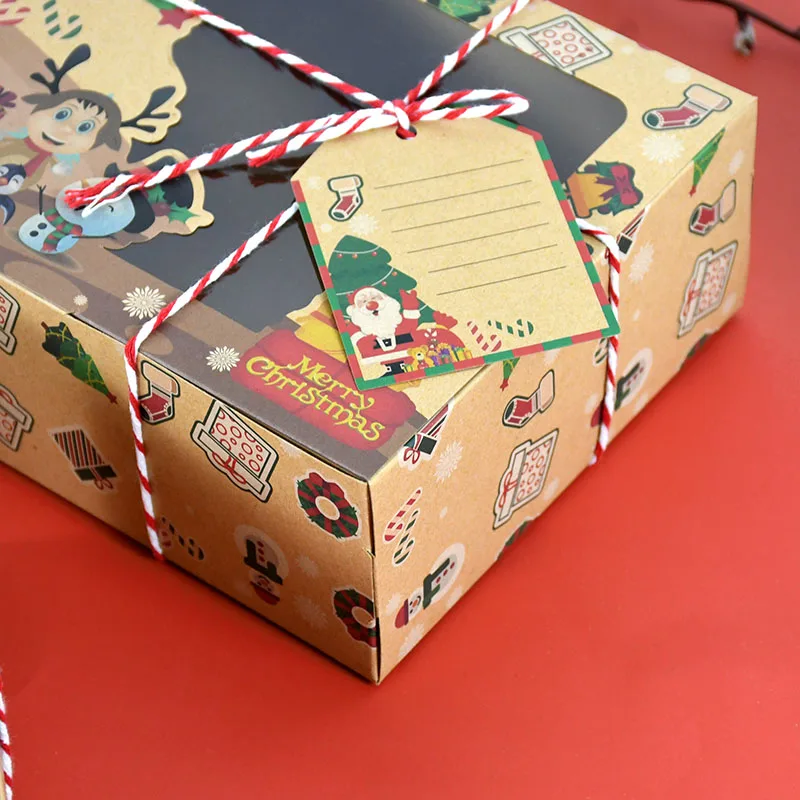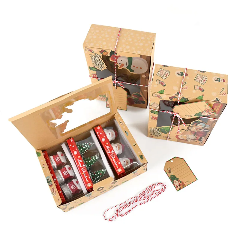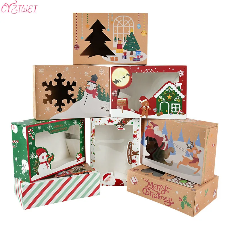 4 шт. смешанные рождественские подарочные коробки печенья для рождественской вечеринки рождественские подарочные коробки из крафт-бумаги для хлебобулочных продуктов с прозрачным окномUSD 13,14/Шт/Лот 1