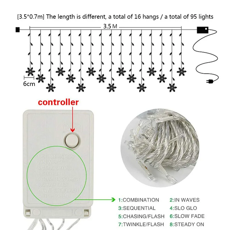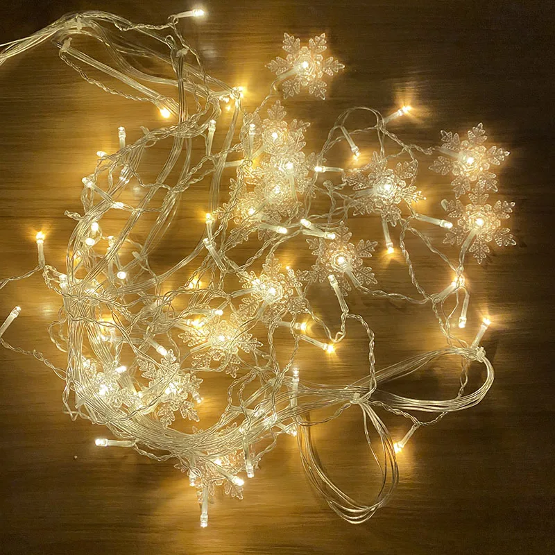 Рождественская гирлянда, светодиодная гирлянда со снежинками, мигаю...