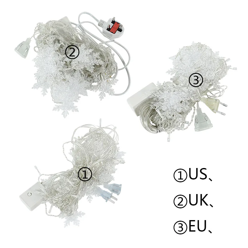 Рождественская гирлянда со снежинками, венок, 220 В, 110 В, гирлянд...
