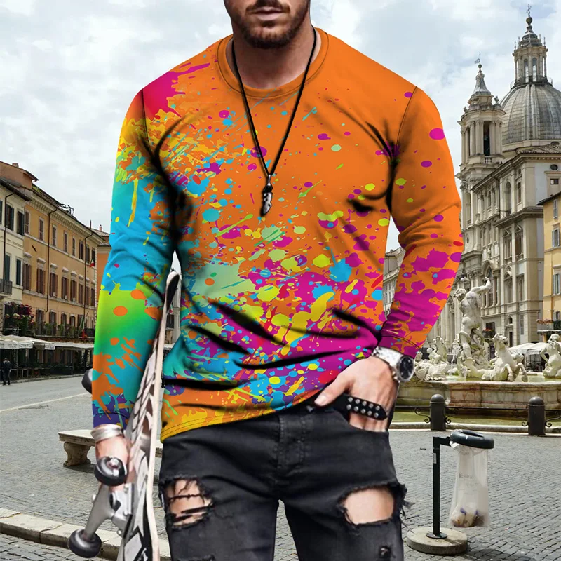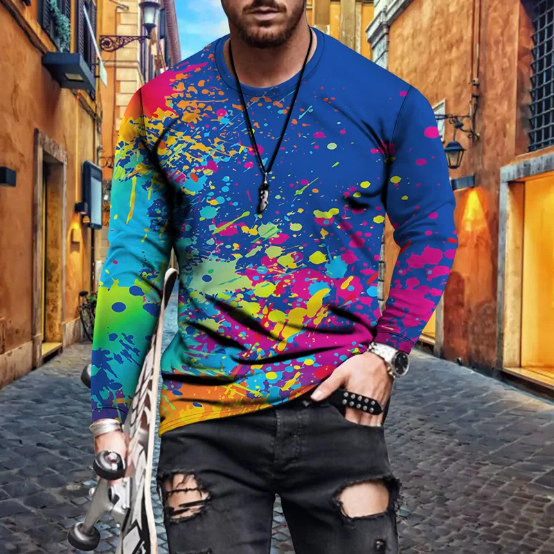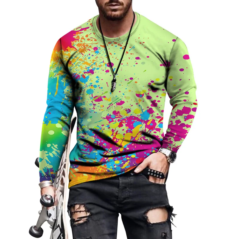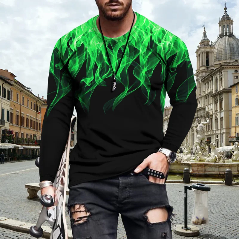 Мужская футболка с длинным рукавом, круглым вырезом и 3D-принтом