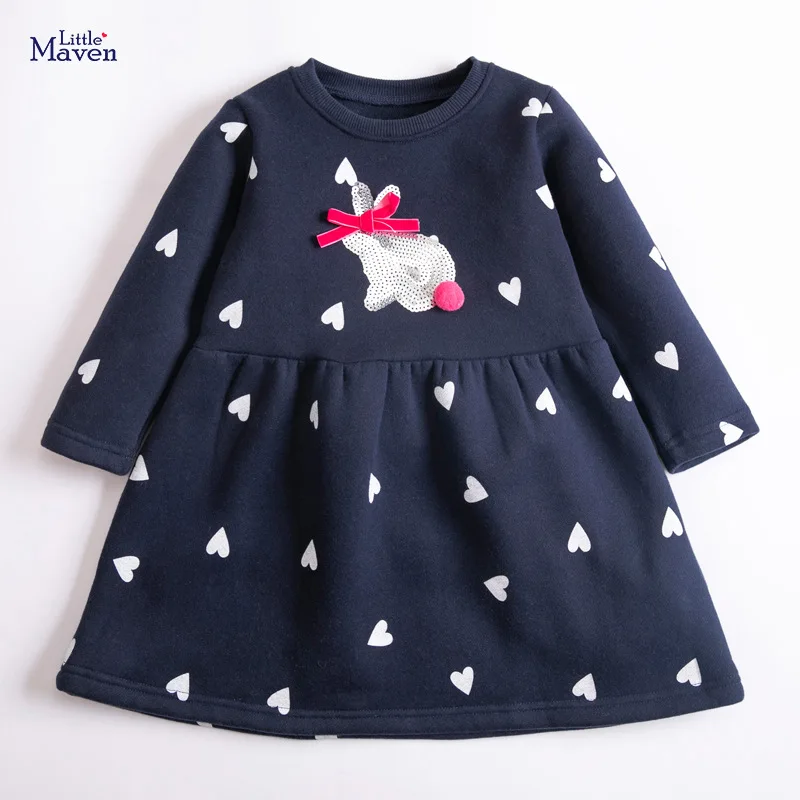 Little maven/флисовое платье зимняя хлопковая плотная одежда с блестками и кроликом милое теплое платье для холодной осени для детей от 2 до 7 лет