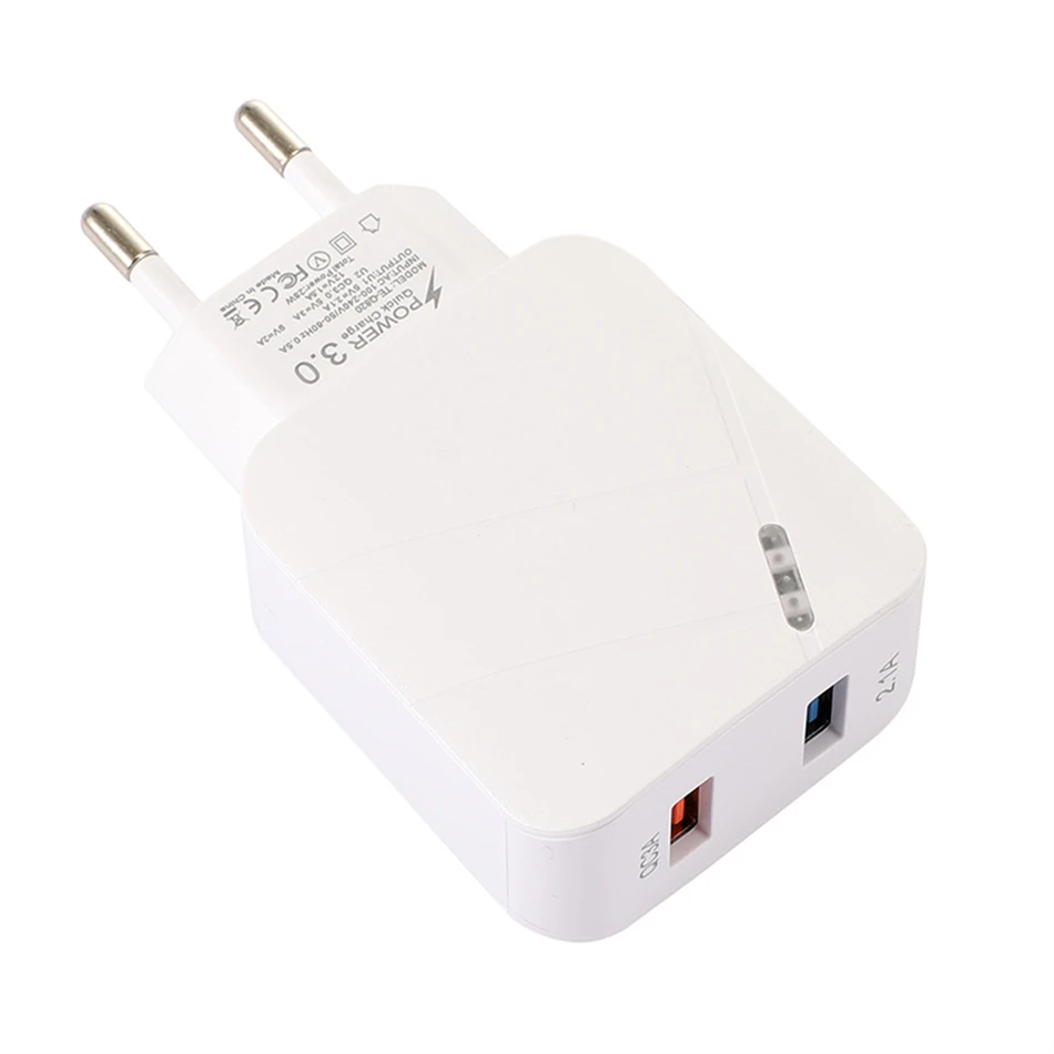 Быстрое зарядное устройство Qi 28 Вт QC3.0 + 2,1a USB с двумя портами для быстрой зарядки с вилкой Стандарта ЕССША, дорожное зарядное устройство со светодиодом