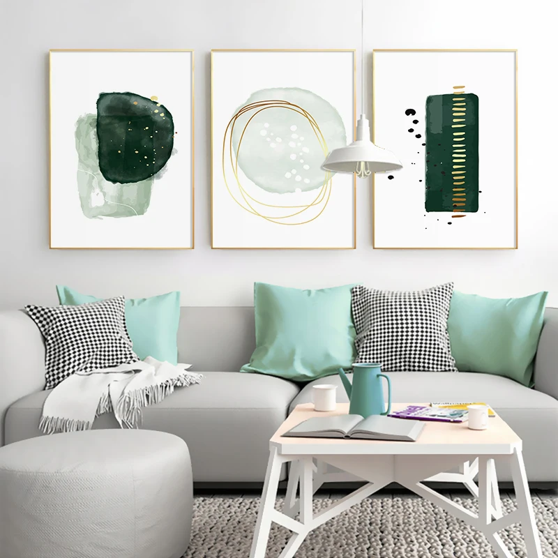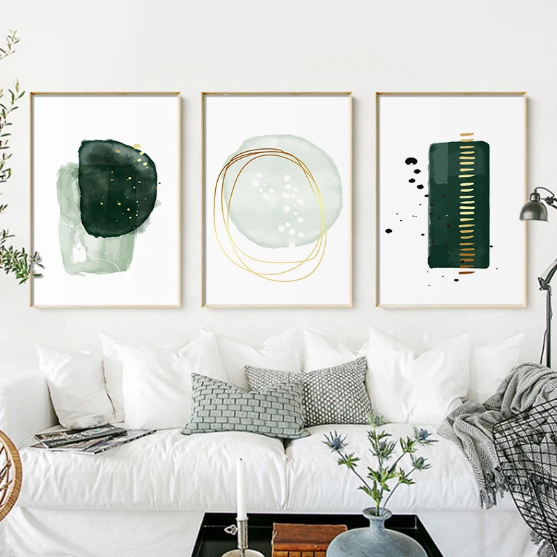 Скандинавский художественный принт Румяна зеленые и золотые абстрактные картины для интерьера настенный постер для эстетического декора комнаты украшение для дома картина