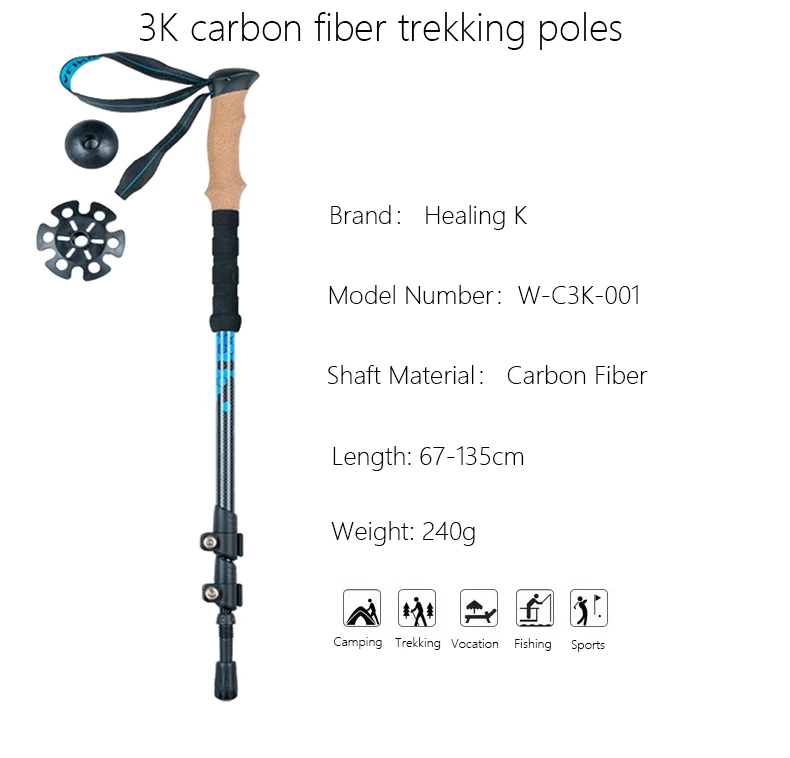 Мягкая ручка из углеродного волокна EVA, регулируемые трекинговые палки с 3 отделениями светильник легкая палка для ходьбы