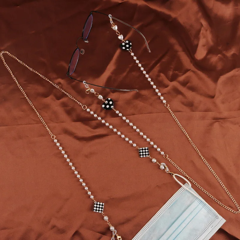 Новинка 2021, модная Шахматная цепочка с жемчужинами для солнцезащитных очков, держатель для маски, шнурок, Очаровательная Нескользящая цепочка для очков для женщин