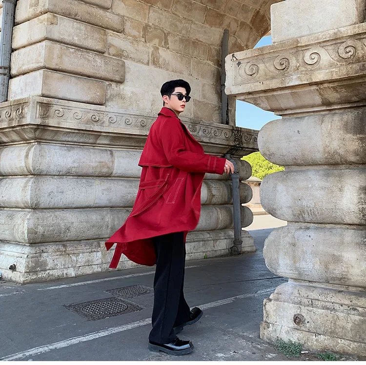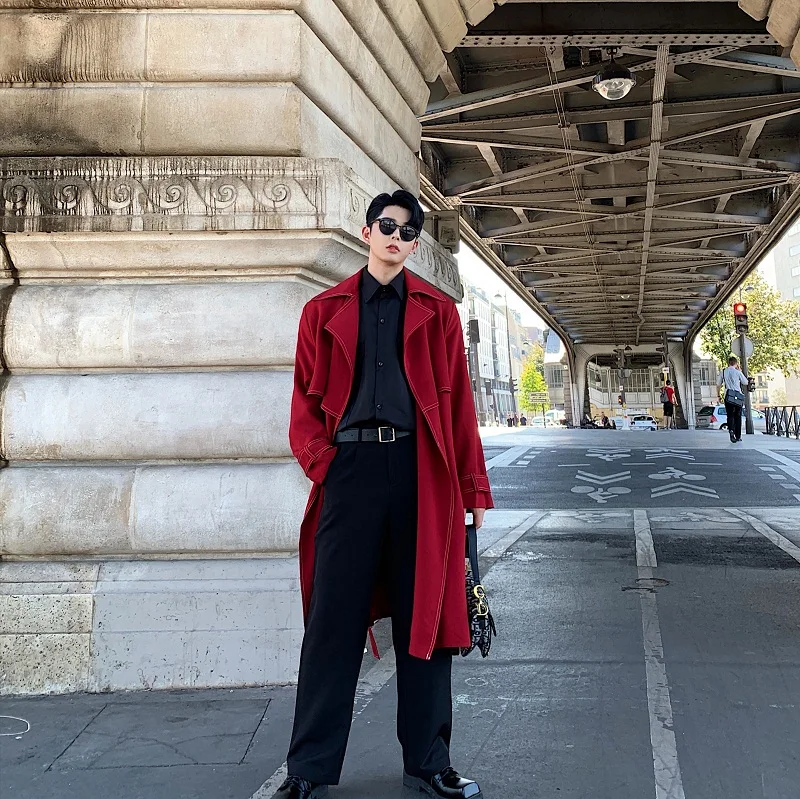 Мужская Свободная Повседневная Длинная Куртка, тренчкот, винтажная уличная одежда для мужчин и женщин, красный кардиган в стиле хип-хоп, ветровка, пальто