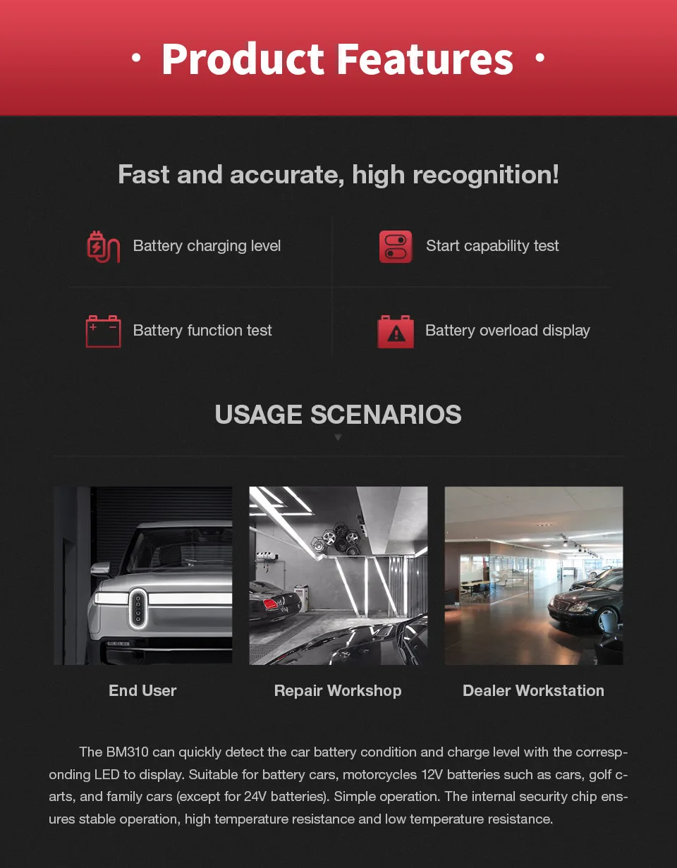 Тестер автомобильного аккумулятора BM310, автоматическая проверка, ...