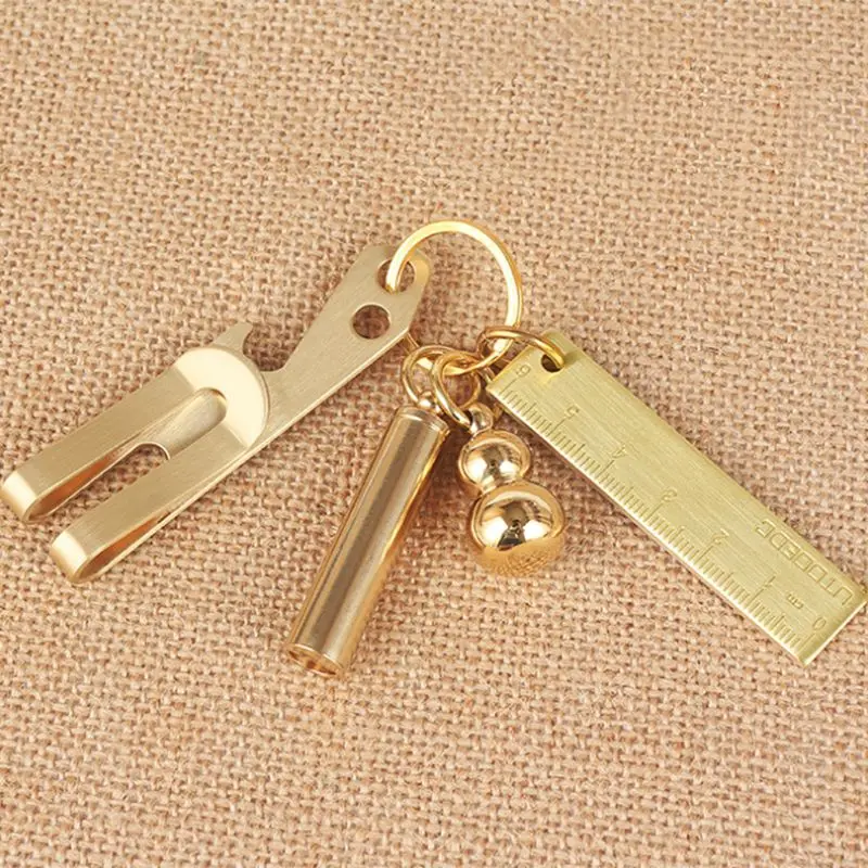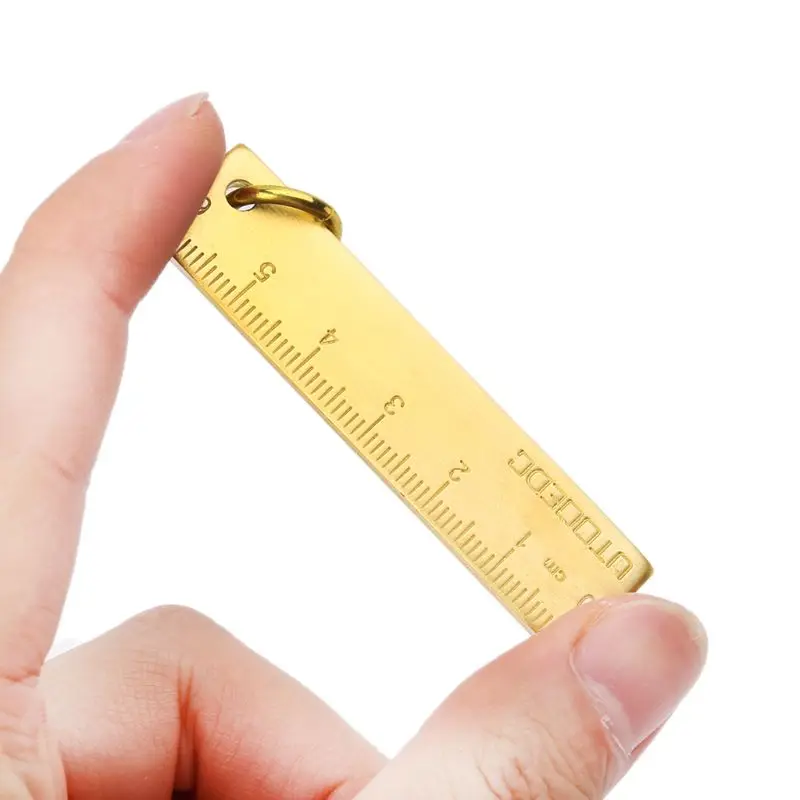 Походная медная линейка, портативный мини-инструмент для повседневного использования, латунная шкала, брелок-подвеска