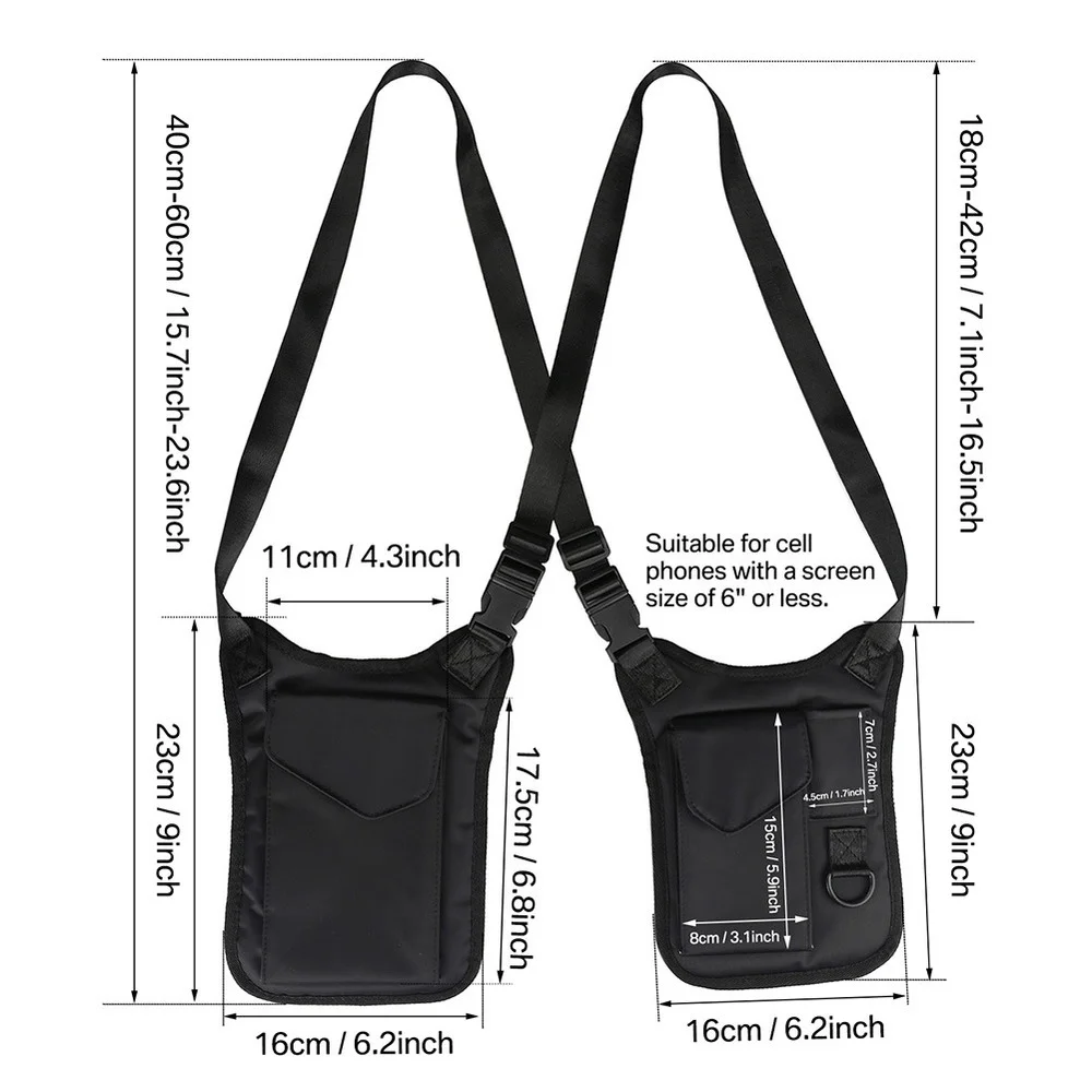 Противоугонная конструкция-Инновационная Противоугонная конструкция делает скрытую сумку-кобуру вашим первым выбором, когда вы выходите. Он может держать ценные предметы скрытыми от карманных карманов под вашей курткой. С 5 Карманами разных размеров вы можете хранить в нем много мелких вещей, таких как мобильный телефон, кошельки, ключи, ручки, паспорта, наличные деньги, наушники, очки, мини-светодиодный фонарик и т. д.