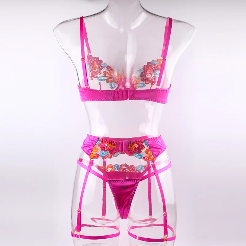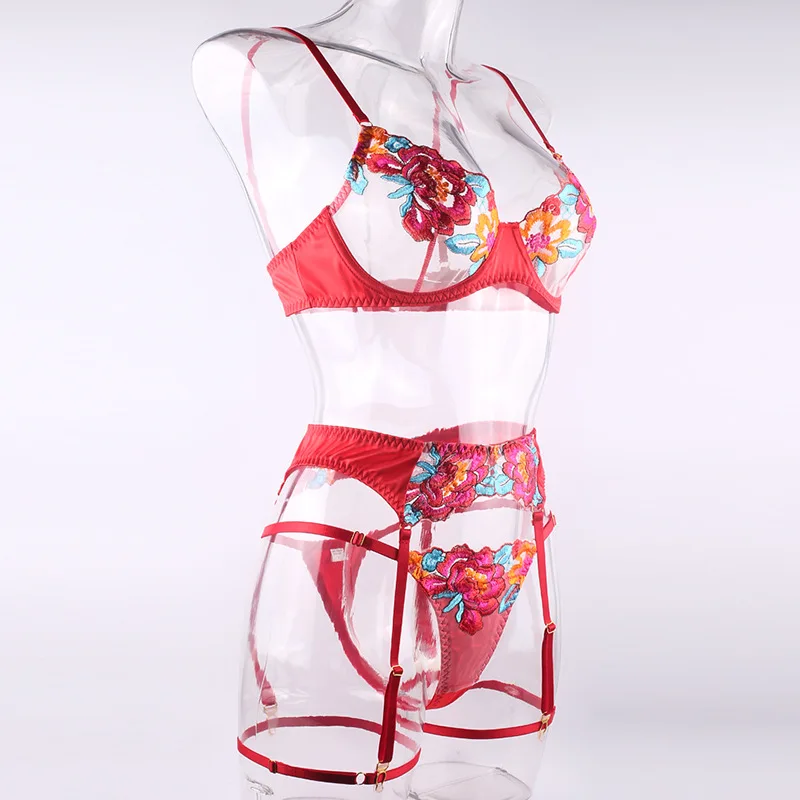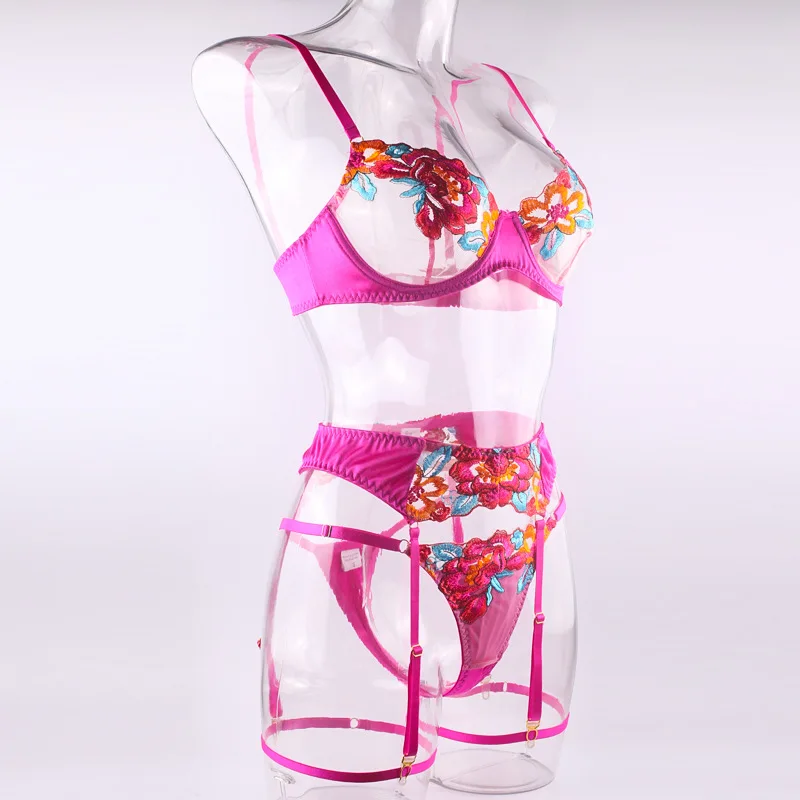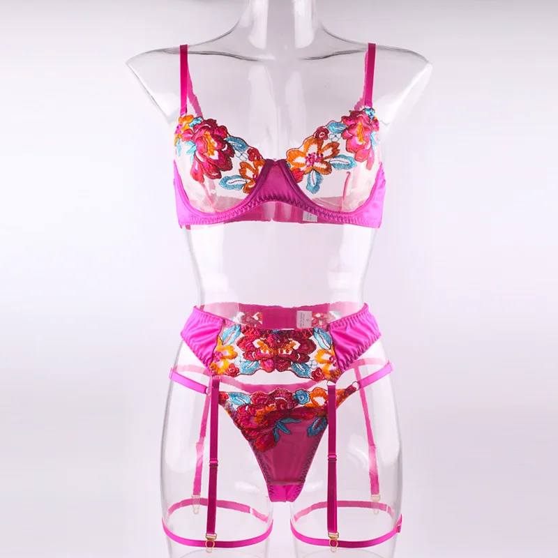 Ellolace эротическое женское белье с цветочным рисунком, комплект из 3 предметов, прозрачное кружевное голубое сексуальное нижнее белье, модные красивые стринги, комплекты