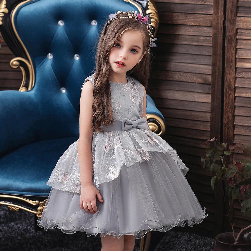 Платье принцессы с вышитыми цветами для маленьких девочек, элегантн...