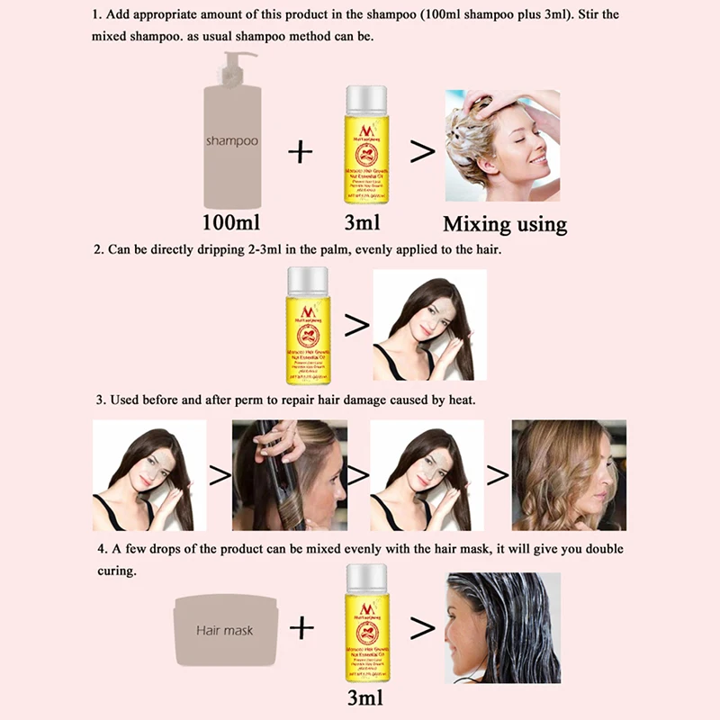 Для ускорения роста волос, восстановления поврежденных волос, долгосрочное использование может предотвратить