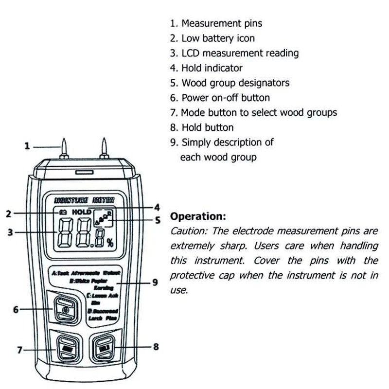 Характеристики: Используйте контактное сопротивление для тестирования, используйте высокоточные электронные компоненты для контроля влажности более ста видов общей древесины внутри группыПо внешнему виду Используйте эргономику. Легко и быстро для пользователя переключать счетчик с простым режимом работы и комфортным ощущением рукиМожет быть использован для доски всех видов древесины и сухого грузаБольшой ЖК-дисплей с содержанием влаги в деревеВстроенный Четыре вида картриджей с точным тестированиемЭргономичный дизайн подходит для различных особых случаевВстроенное Обнаружение низкого заряда батареи и автоматическое отключениеДлина электрода: 10 ммПринцип измерения: электрическое сопротивлениеКонтакты электрода: ИнтегрированныеАвтоматическое выключение: около 10 минутИсточник питания: аккумулятор 9 В (не входит в комплект)-1 шт.Цвет: серыйМатериал: пластикРазмеры: 13x7x3cmПосылка:1 х Деревянный измеритель влажностиТолько вышеуказанная посылка, другие товары не включены.Примечание: светильник и различные дисплеи могут привести к тому, что цвет товара на картинке немного отличается от реального. Допускается погрешность в измерениях +/- 1-3 см.
