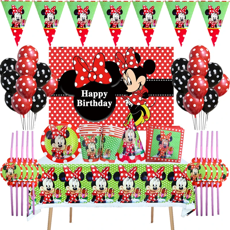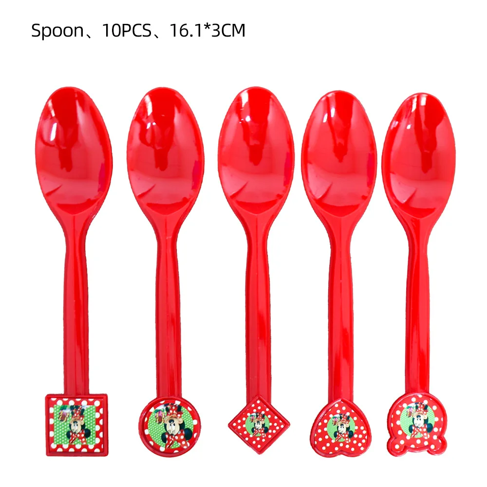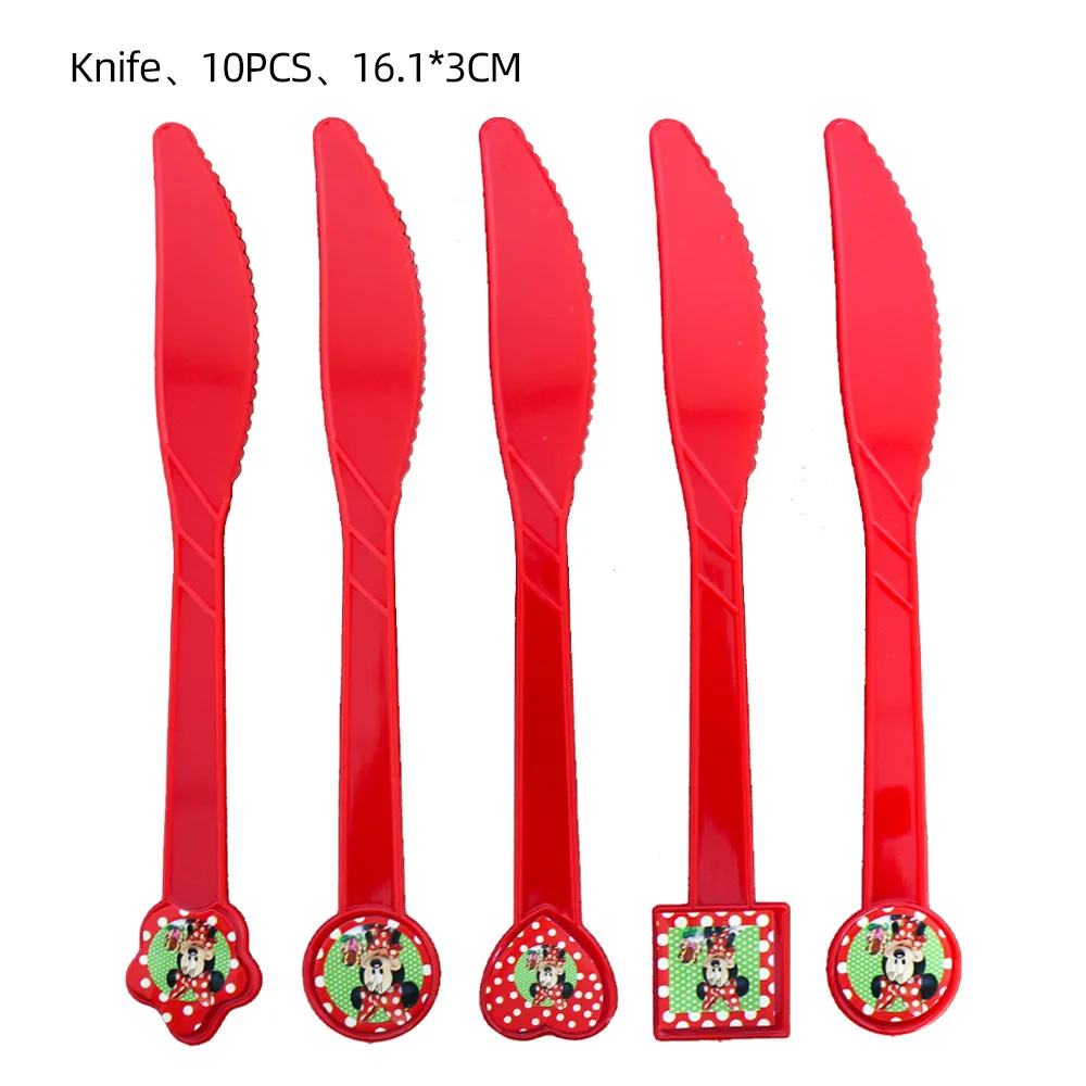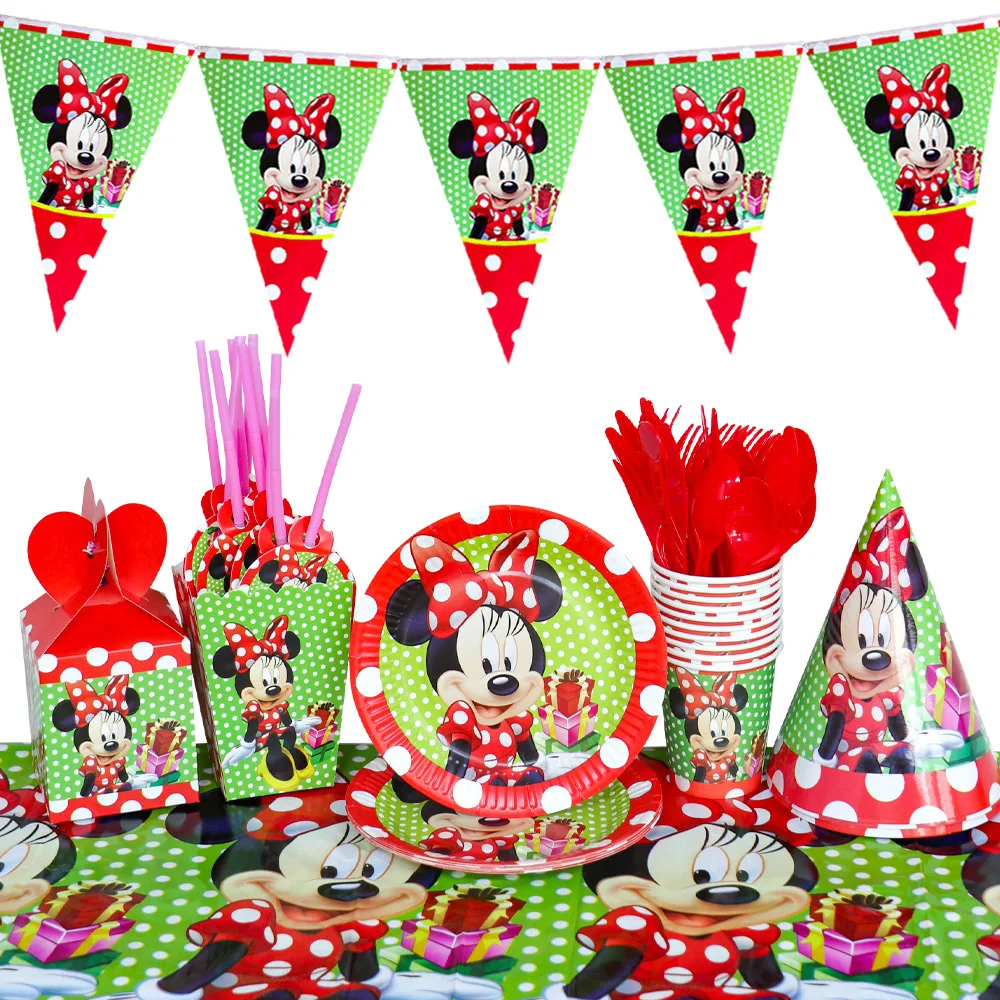 Диснеевские одноразовые столовые приборы Минни для вечерние НКИ, красная Минни Маус, аксессуары для украшения детского дня рождения и вечевечерние НКИ