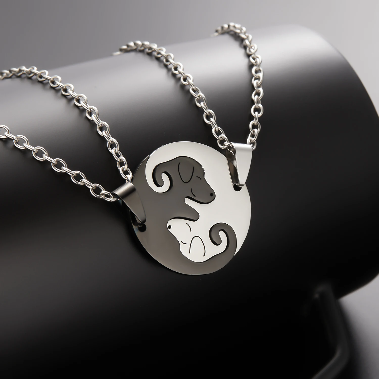 Романтическая пара ожерелье 2 шт в паре черный белый кот собака животное кулон ожерелье для женщин мужчин Дружба Ювелирные изделия любовник подарки