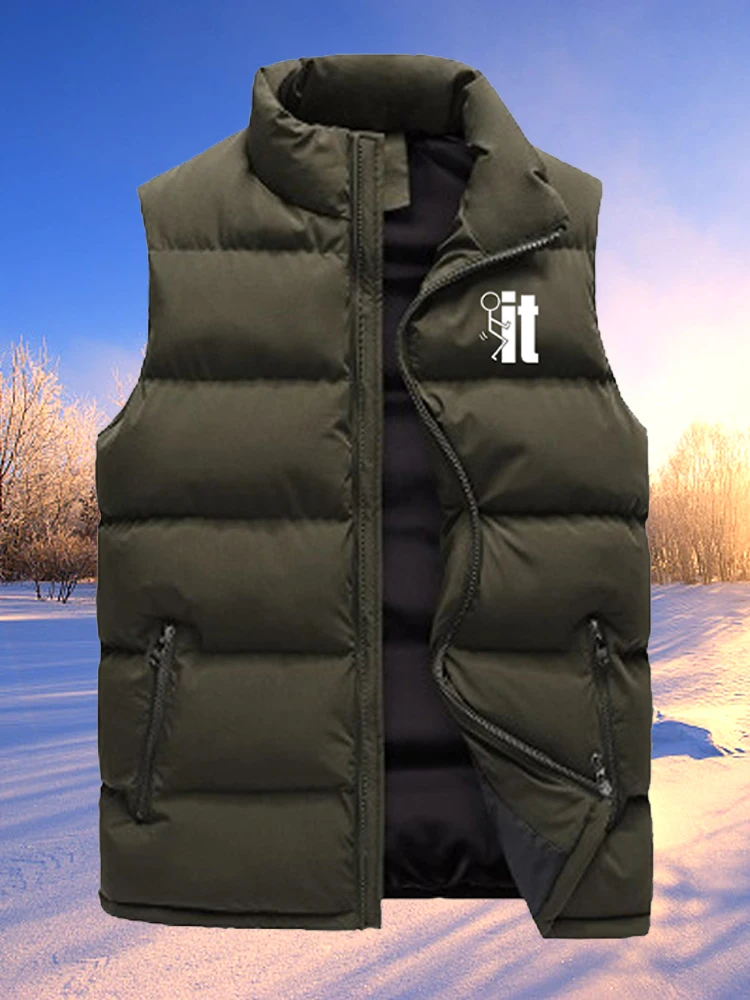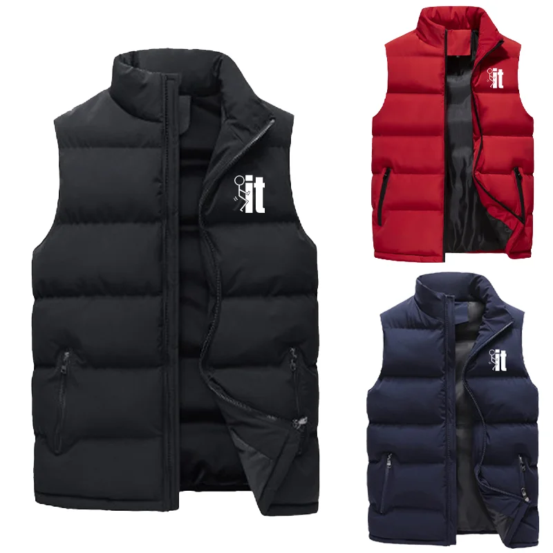 Мужской уличный теплый пуховой жилет Bikinis Secret, осенне-зимний жилет с воротником-стойкой, Повседневная модная куртка без рукавов с принтом, одежда