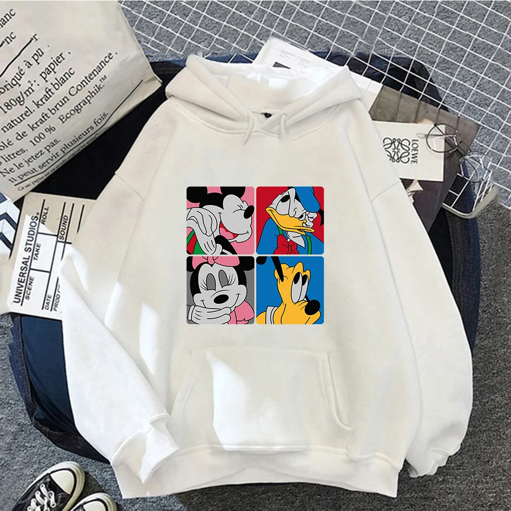 Толстовки с Микки и Минни Маус, Милая одежда, Женская смешная толстовка с мультяшным принтом Диснея в стиле Харадзюку, зимние теплые модные женские толстовки