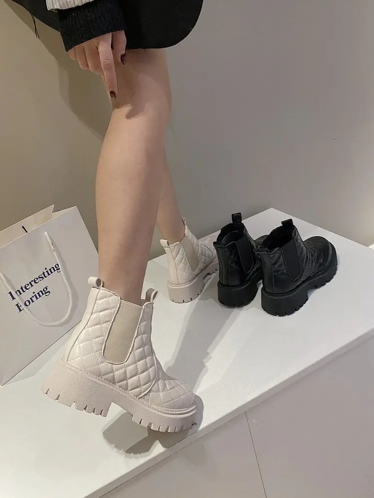 Женские ботинки челси, зимние теплые короткие ботинки на толстом ка...