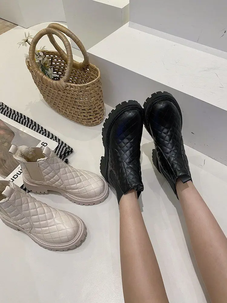Новинка 2021, женские ботинки, Нескользящие теплые зимние ботинки, женские бархатные короткие клетчатые теплые роскошные дизайнерские ботинки бежевого и черного цвета