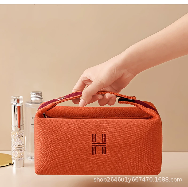 Женская сумка для макияжа, модная женская холщовая большая сумка на молнии для хранения туалетных принадлежностей, портативная дорожная сумка-Органайзер, 2021