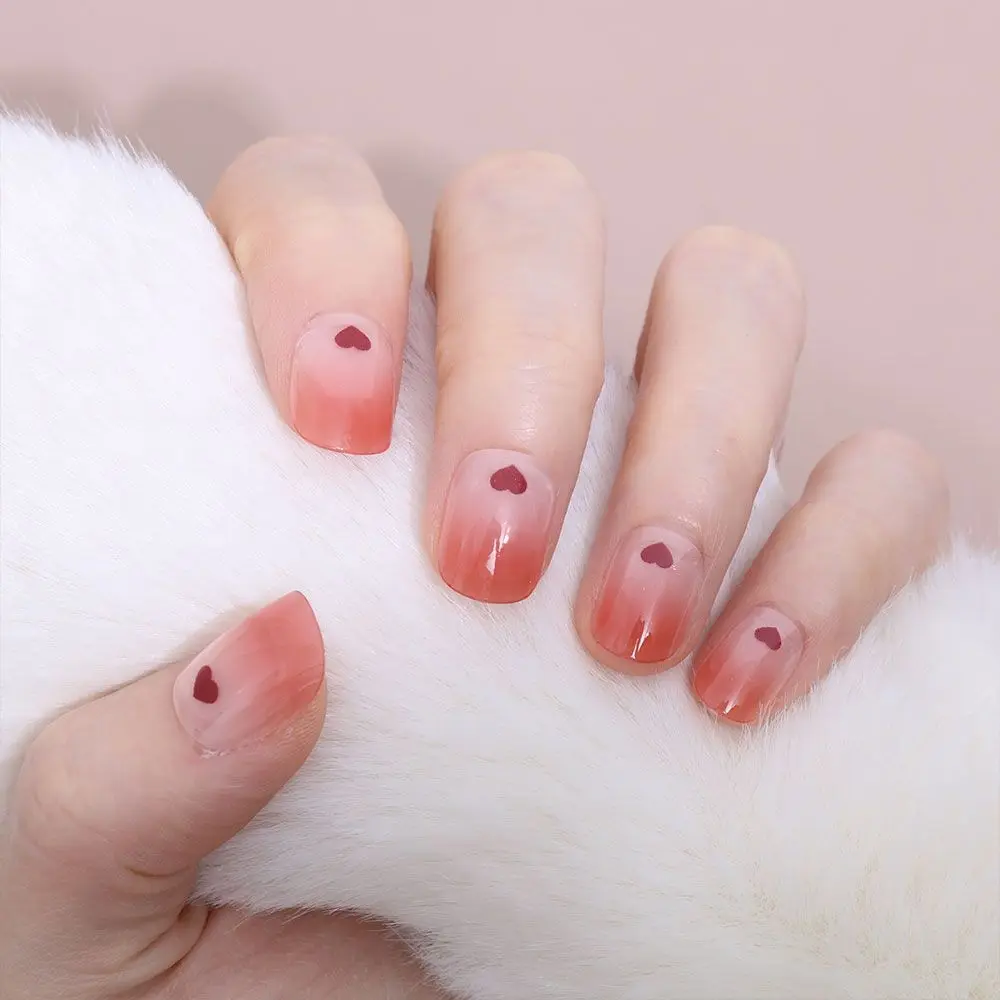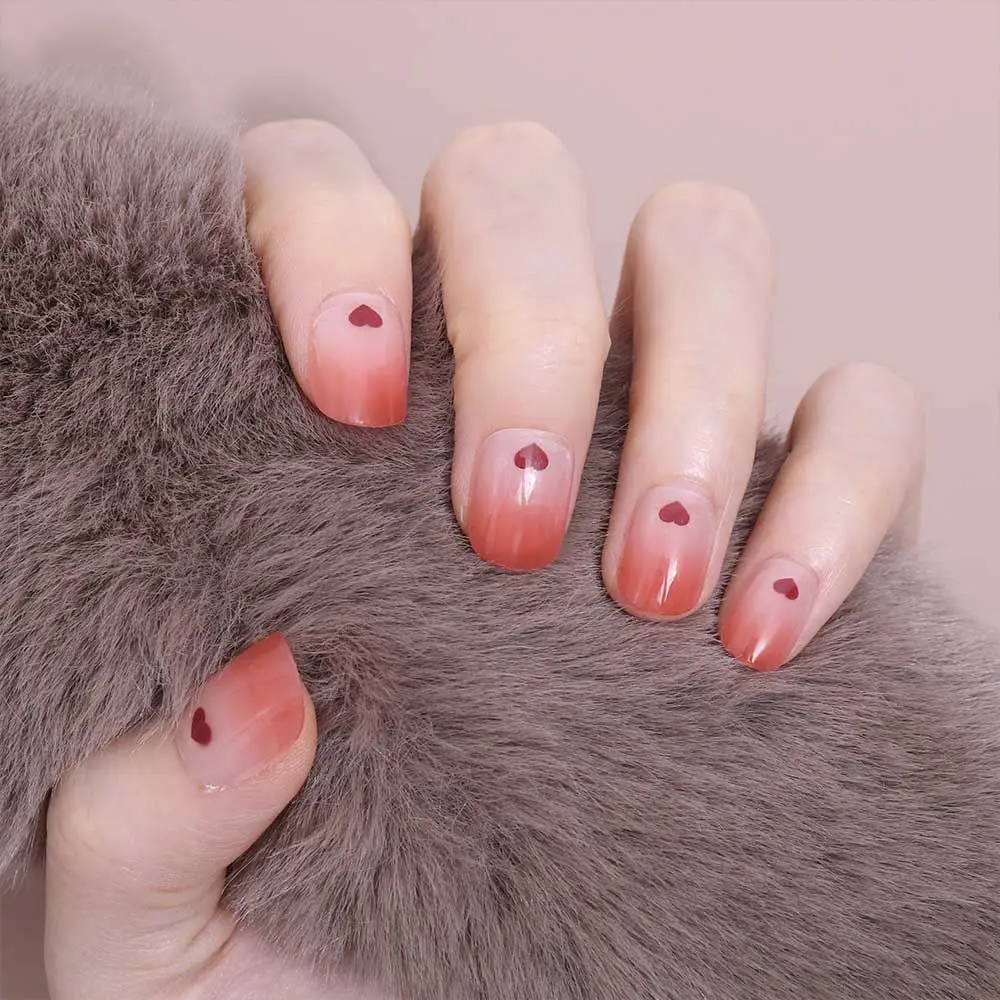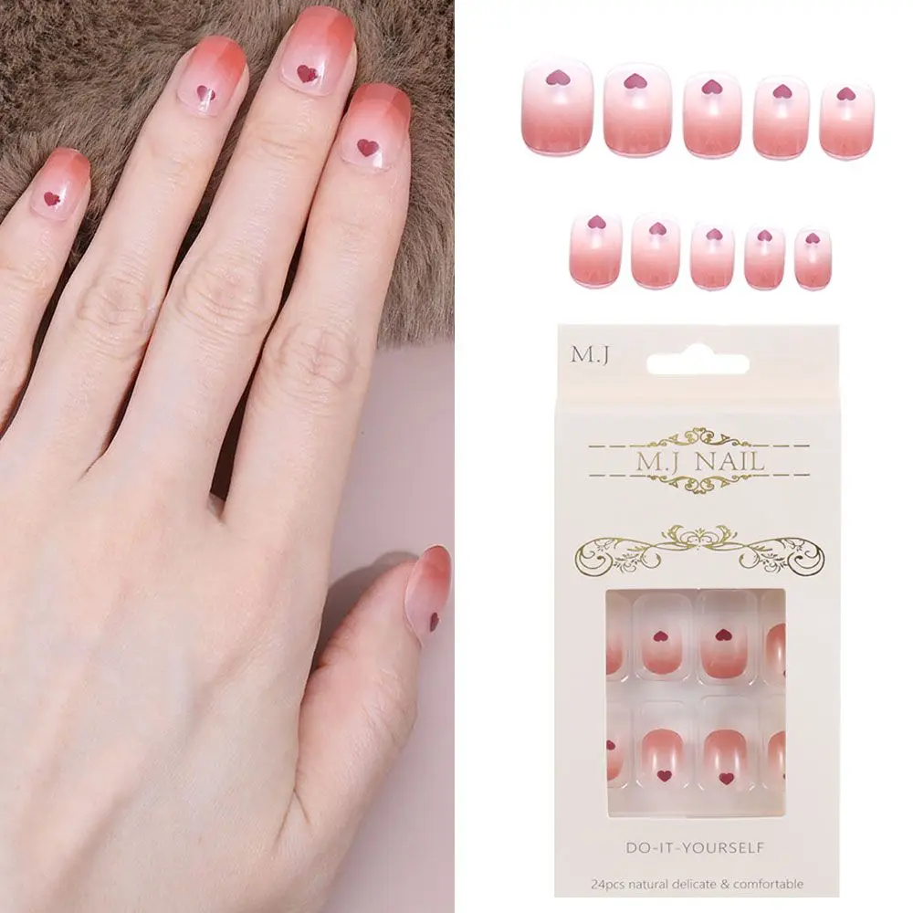 Красота полное покрытие короткий абзац градиентный цвет Искусственные ногти искусственные ногти любовь сердце