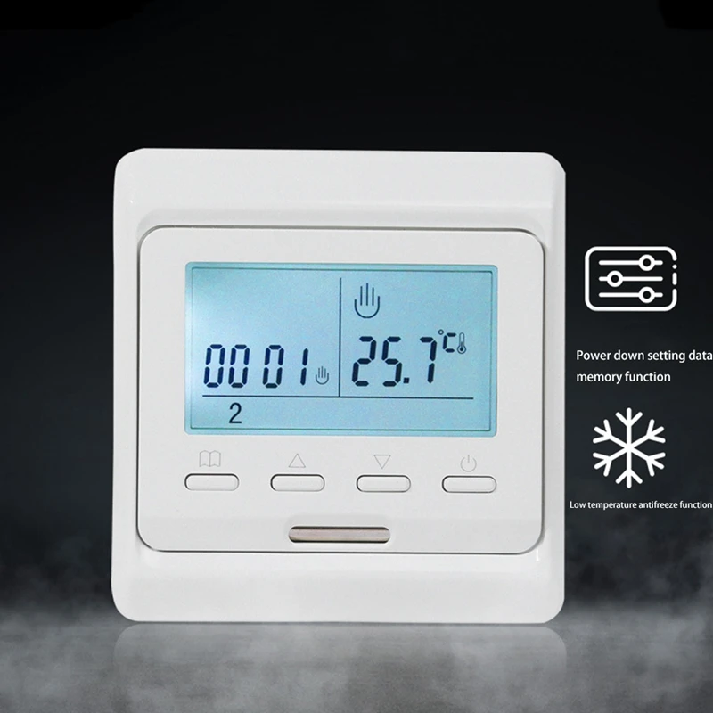Еженедельный программируемый термостат с ЖК-экраном, можно установить 6 перидов, называемых события каждый день с разной температуройТакже вы можете выбрать «режим контроля температуры» или «ручной режим» в соответствии с вашими требованиямиТермостат рекомендуется для Управления Электрическими нагревательными устройствами или приводом клапана вкл/выкл, используемым в водной системе отопления.Технические данные:Напряжение: 230 В переменного тока 50-60 ГцПотребляемая мощность: 2VAДиапазон установки: 5 - 90 градусов ЦельсияДиапазон ограничения: 5 - 99 градусов Цельсия (заводская настройка: 35 градусов Цельсия)Точность измерения температуры: 0,5-10 Цельсия высокое качество регулируемый (заводских настроек: +/- 1 градусов по Цельсию)Температура окружающей среды: -5 - 50 градусов ЦельсияСтепень защиты: IP20Цвет: белыйМатериал: пластикРазмер: 86x86x12 ммПосылка:1 x ЖК-Программируемый Регулятор Температуры1 датчик NTC2 x винтТолько вышеуказанная посылка, другие товары не включены.Примечание: светильник и различные дисплеи могут привести к тому, что цвет товара на картинке немного отличается от реального. Допускается погрешность в измерениях +/- 1-3 см.