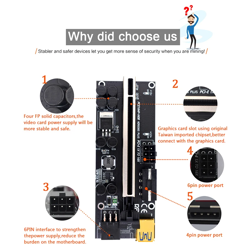 Адаптер PCI-E GPU отличается стабильным сопротивлением и имеет 3 светодиодный светильник для отображения рабочих состояний.