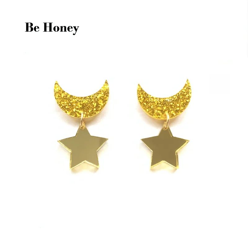 Милые Японские Аниме серьги Сейлор Мун блестящие золотые полумесяца с зеркалом золотые звезды акриловые серьги-гвоздики для женщин