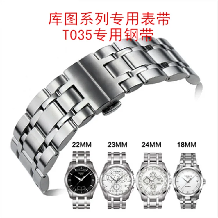Твердый ремешок из нержавеющей стали для Tissot T035 Сменные ремни 18 мм 22 мм 23 мм 24 мм для T035617 T035439A браслет пояс