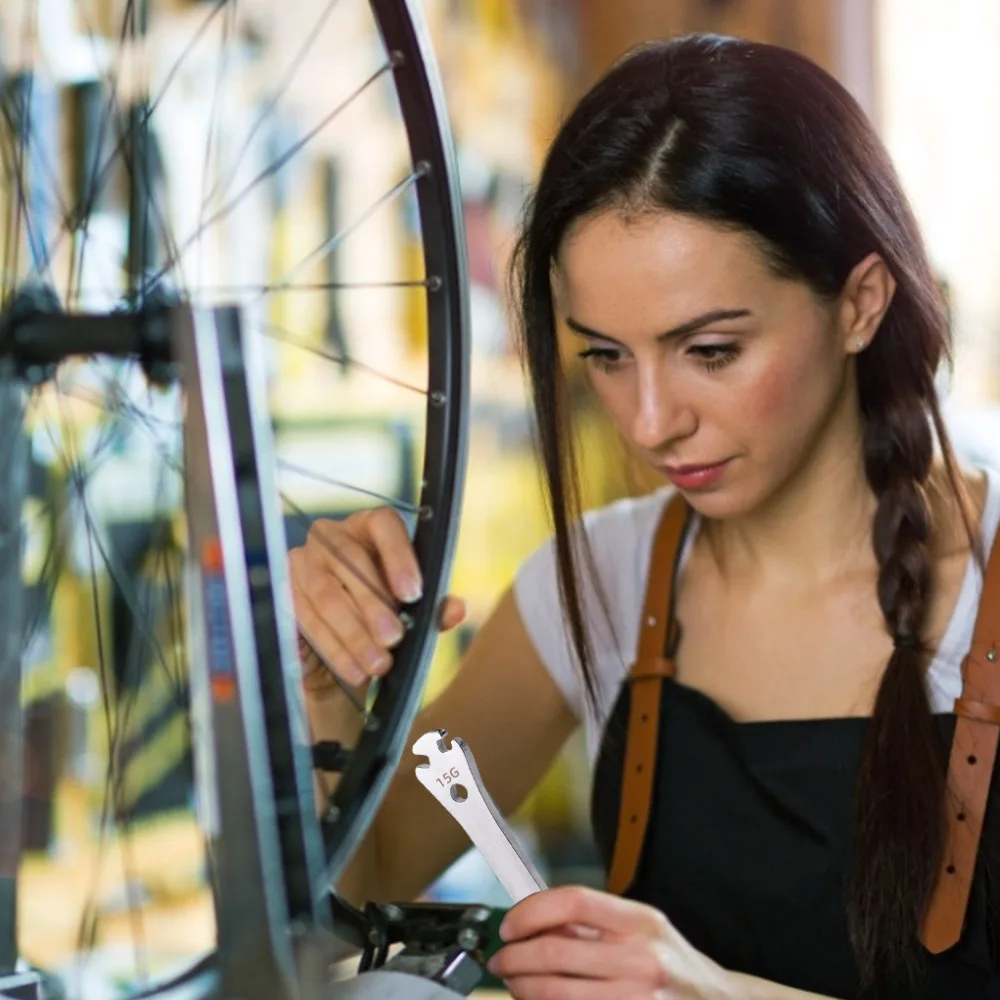 Тип 1Спецификация:Материал: нержавеющая сталь.Размер: 90x17.5x3.8 мм/3,54x0,69x0,15 дюймов (Д x Ш x В).Посылка включает в себя:1 шт. велосипедный спицевый ключ.