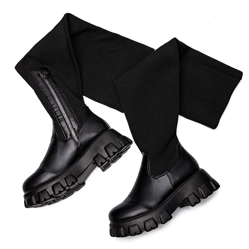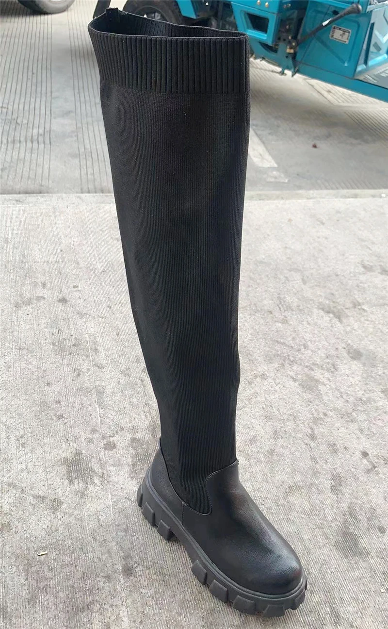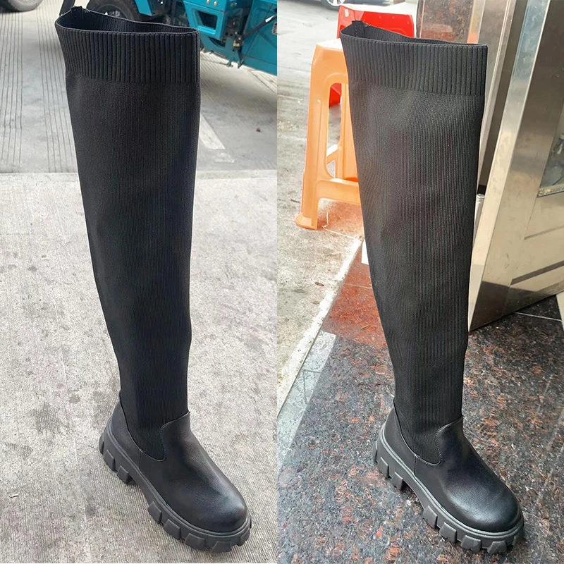 Сексуальные женские сапоги до колена, высокие сапоги до бедра, облегающая обувь, женская обувь на толстом каблуке размера плюс 43, эластичные длинные сапоги, теплые осенне-зимние сапоги