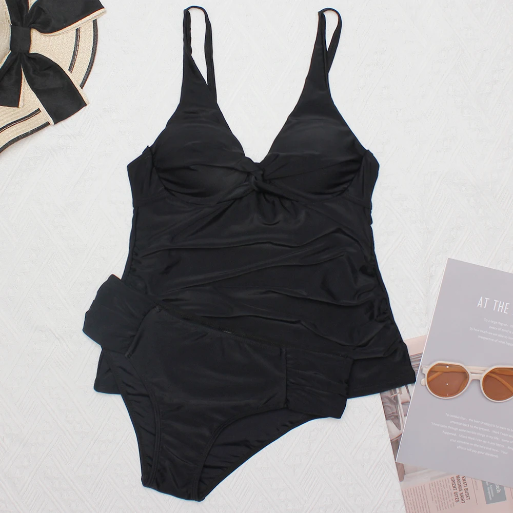 Классические купальники для женщин, купальники из двух частей с V-образным вырезом, женские купальники с эффектом пуш-ап, Женские однотонные купальники для похудения