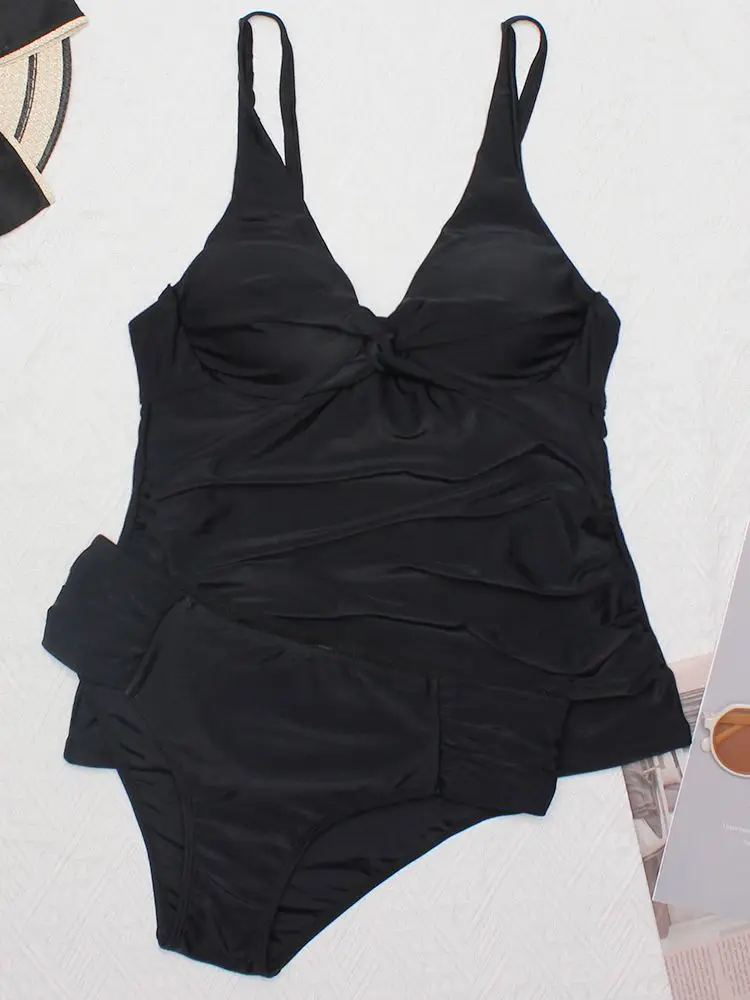 Винтажный слитный женский купальник с рюшами, черный купальник пуш-...