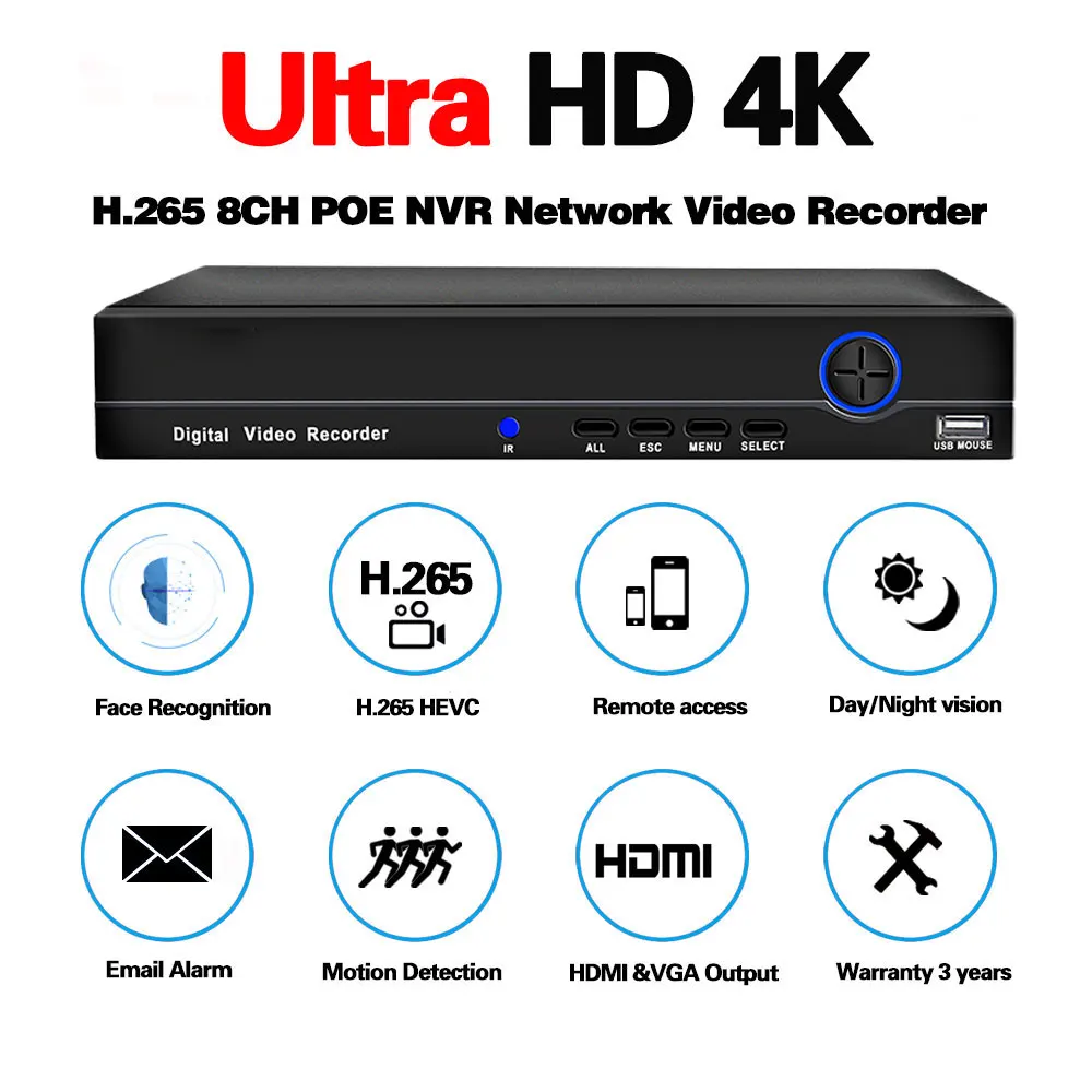 8CH POE NVR ResolutionH.265 8CH 4K NVR