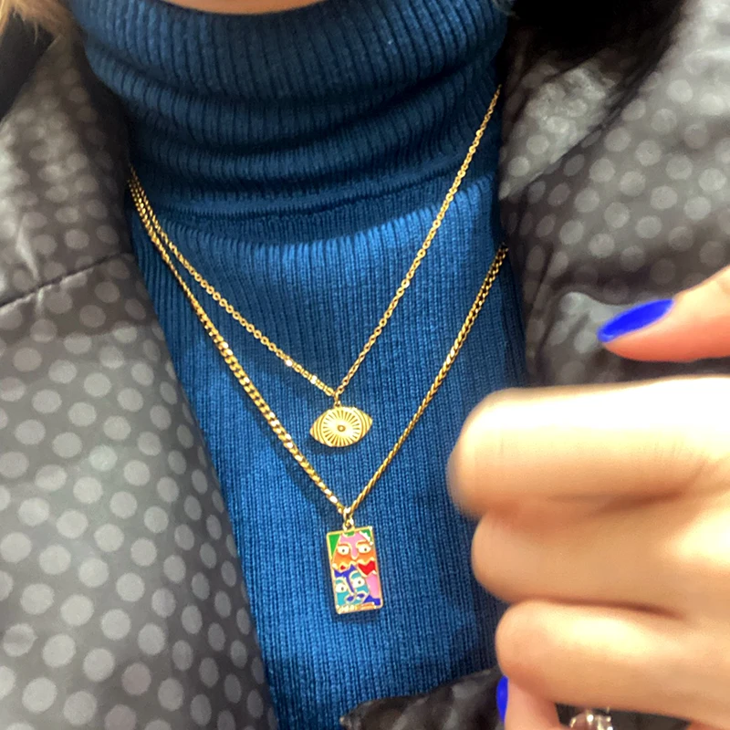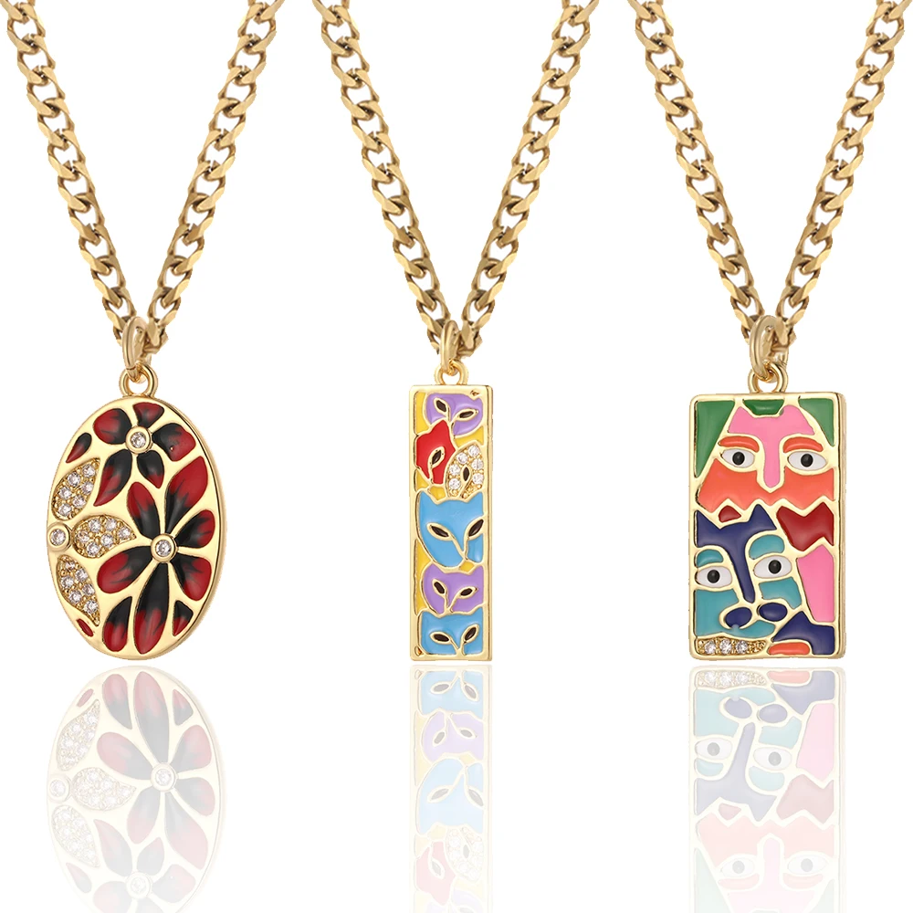 Красочная мозаика в стиле бохо, Женская Длинная цепочка из нержавеющей стали, модное ожерелье для пары, золотые воротники для друзей