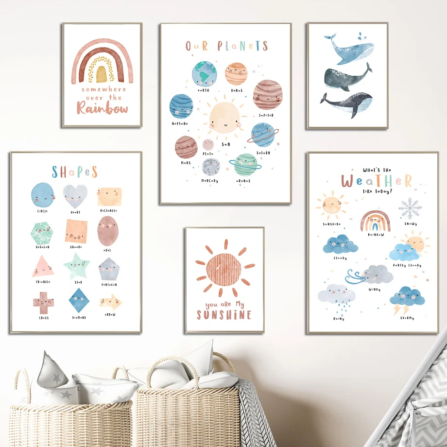 Настенная картина в виде радуги планеты солнца Кита, погоды, Картина на холсте, скандинавские постеры и принты, картины для детской комнаты, кавайный домашний декор