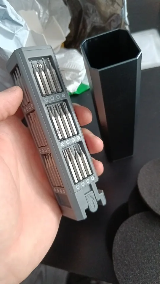товар получил. Упаковка хорошая, повреждений нет. Сам товар приличного качества, думал что будет хуже. Чехол алюминий прочный, хорошо окрашен. Вставка с битами из пластика, биты удерживаются магнитами хорошо , что влетели прям надо очень постараться. Биты проверил тока ходовые PH и PZ тоже хорошо. в общем рекомендую.