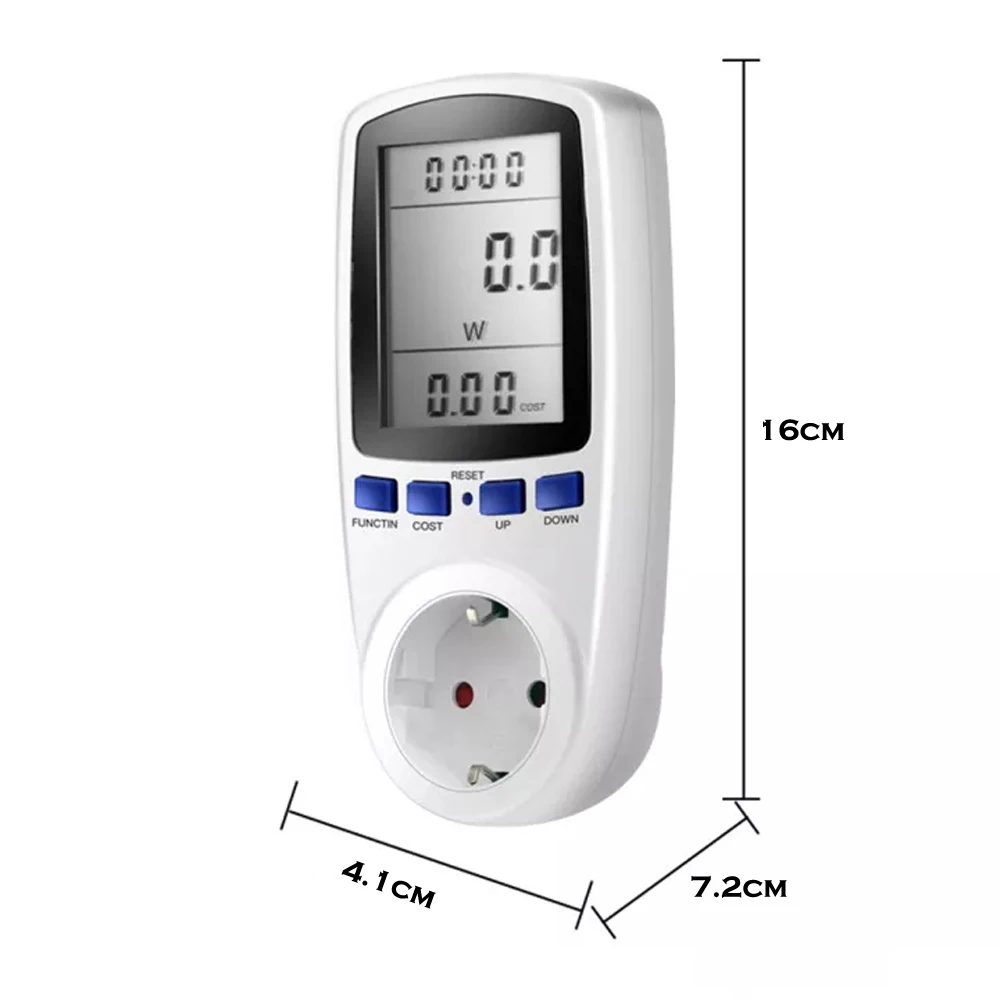 9. Измерьте различные параметры + Функция защиты от перегрузки: мощность (Вт), энергия (кВтч), вольт, ампер, герц, коэффициент мощности и Максимальная мощность (Вт), время, дней (ваш счет за электричество в основном основан на кВтч).