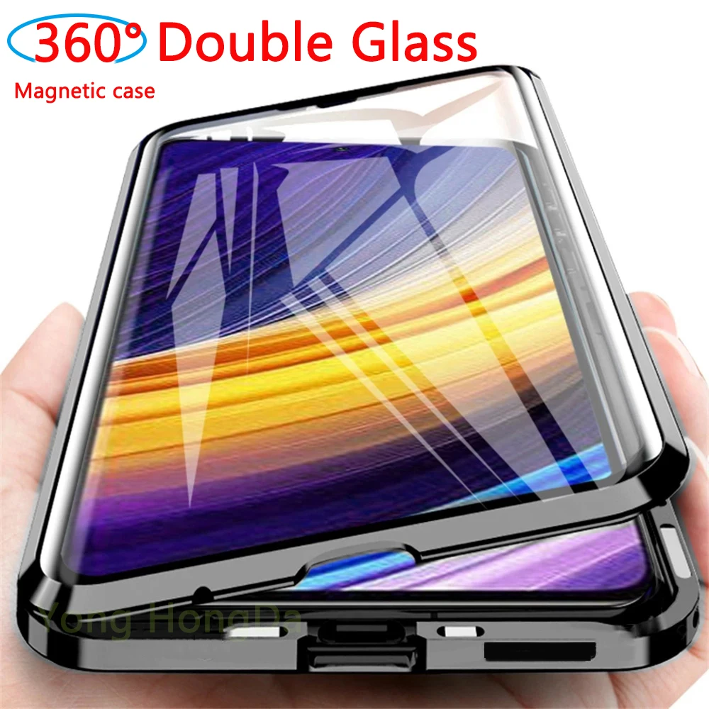 Магнитный чехол с полной защитой 360 градусов для Xiaomi Redmi Note 9 10s 10 9s 9T 7 8 8T 9C 9A Poco X3 NFC M3 F3 Pro, двухсторонний стеклянный чехол