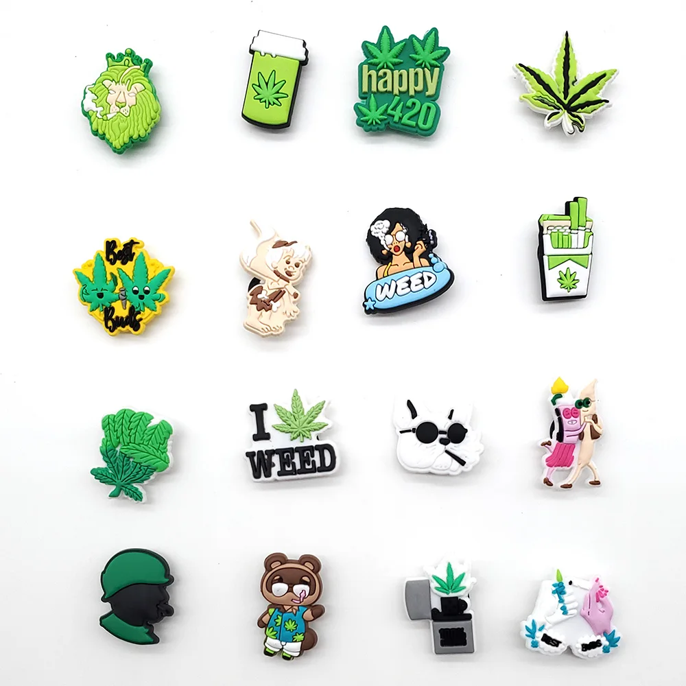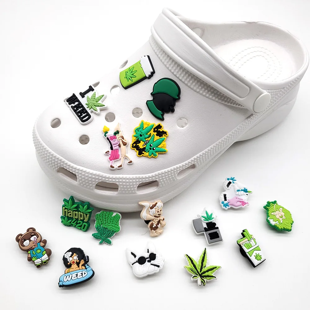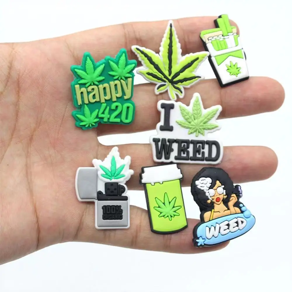 Лидер продаж, 1 шт., забавные украшения для обуви из ПВХ с изображением сорняков, забавные аксессуары для обуви с листьями, подходят для женщин, Кроксы, застежки, пряжки, jibz, подарки для взрослых на рождевечерние