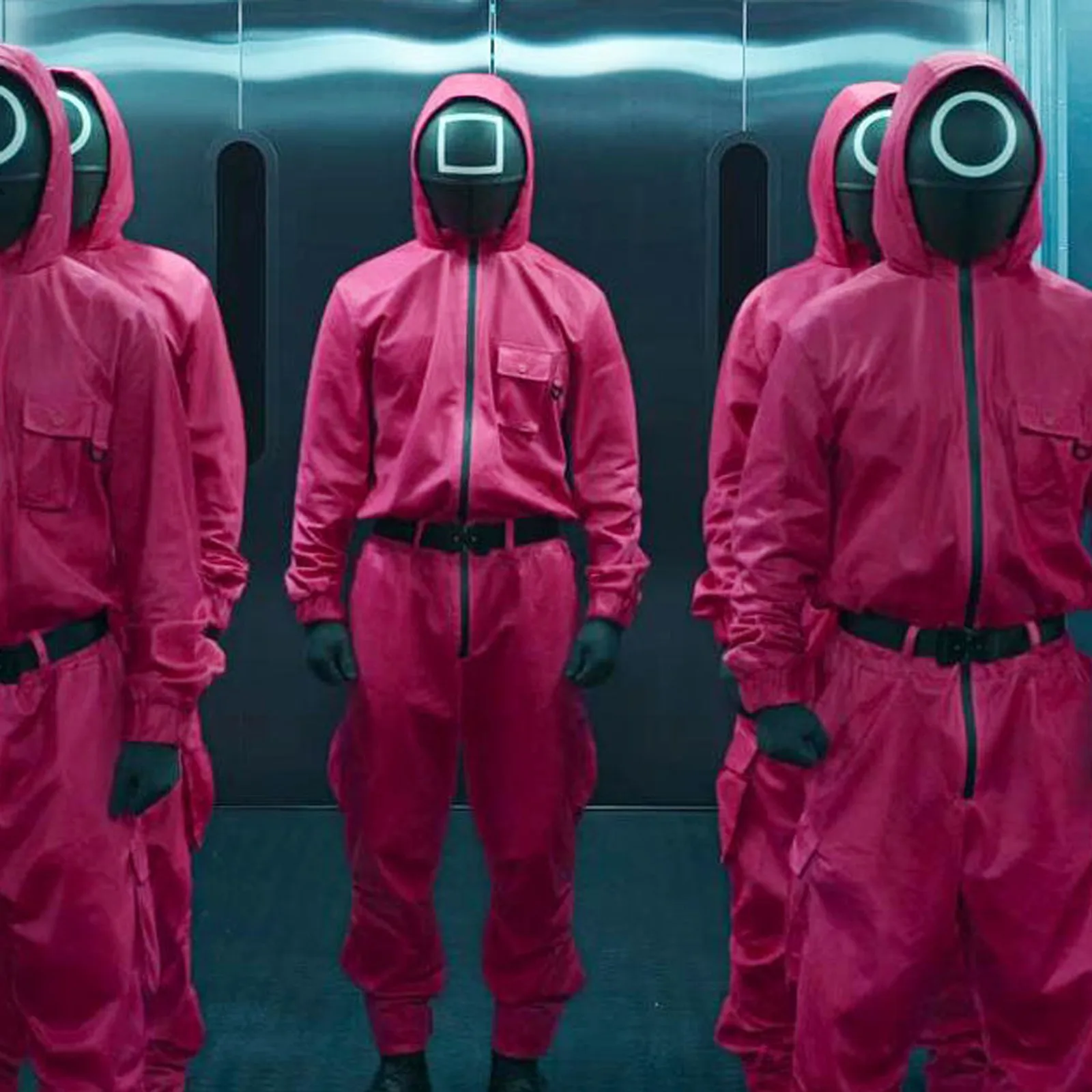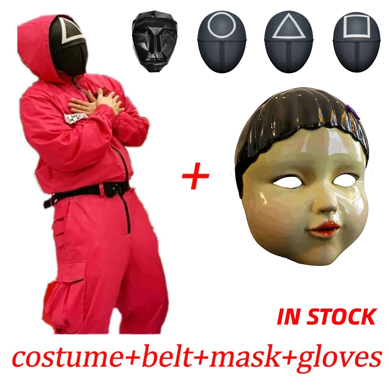 Костюм из игры кальмар, маска, костюм для косплея, комбинезон, пластиковые маски с круглыми, шестью, квадратными, круглыми, треугольными, шлемы, костюм для вечерние, Игра В Мару