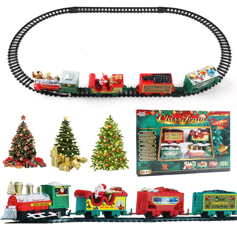 Рождественский поезд, электрические игрушки, украшение для рождественской елки, железнодорожный автомобиль со звуком и светом, рама для поезда, рождественские подарки для детей