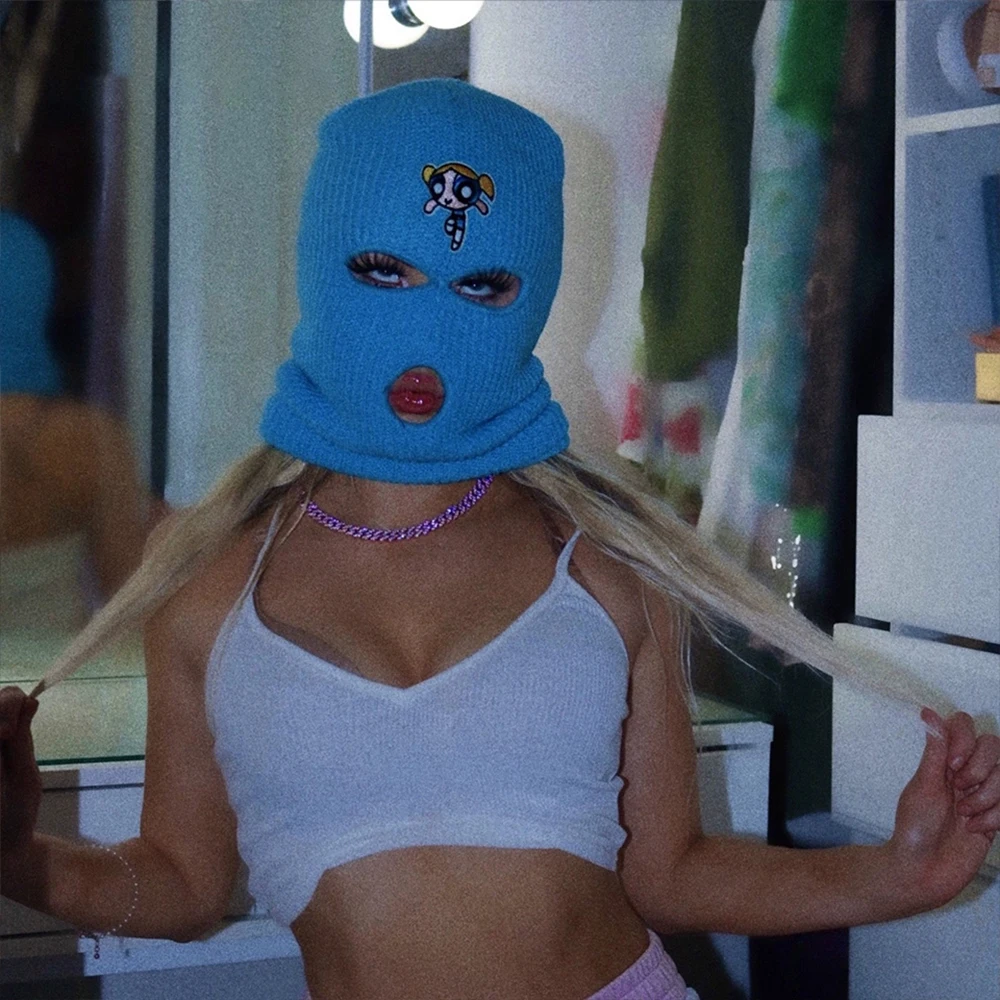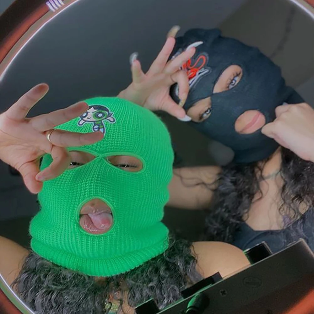 Балаклава Y2K E-girl на все лицо, лыжная маска, шапка с 3 отверстиями, маска для хэллоуивечерние, с вышивкой, для косплея, зимние теплые шапки в стиле хиппи
