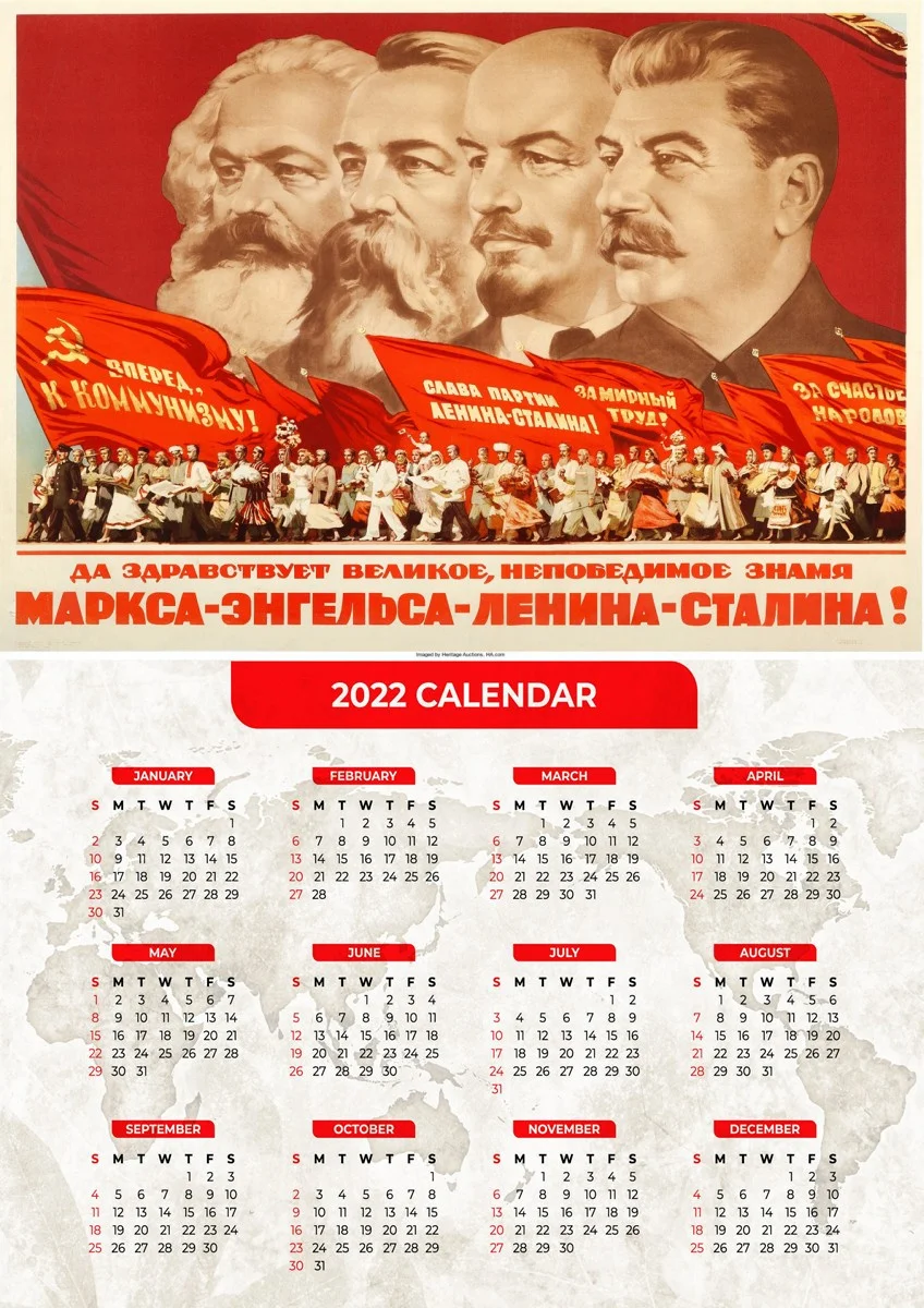 Календарь 2022, плакаты из крафт-бумаги все лучше в красном Советск...