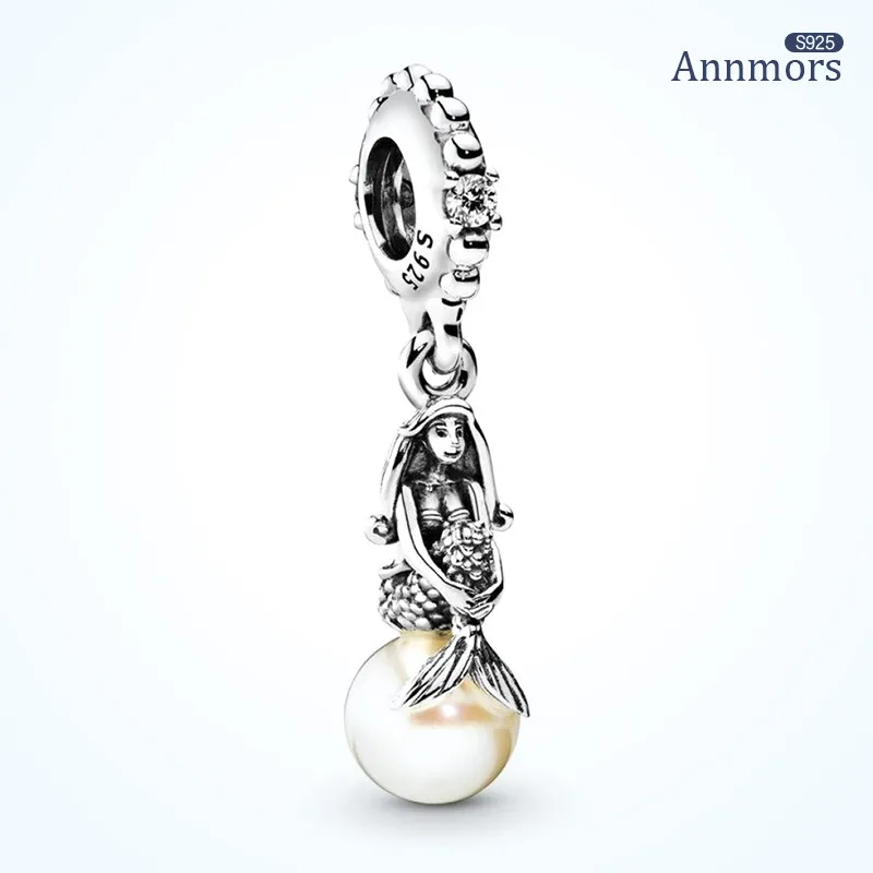 Оригинальные подвески для браслета с мультяшными персонажами, подходят для Pandora, оригинальные подвески для браслета с изображением русалки, сидящего на жемчужном браслете